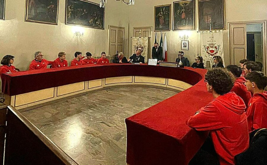 La delegazione sportiva, guidata dal presidente Federico Pelazza, è arrivata in Municipio al gran completo. Insieme a lui, il tecnico della prima squadra maschile Piero Amelio, i dirigenti Pamela Guarnero ed Enrico Antoniotti, e l'intera rosa dei giocatori che ha portato nuovamente il trofeo in Piemonte.