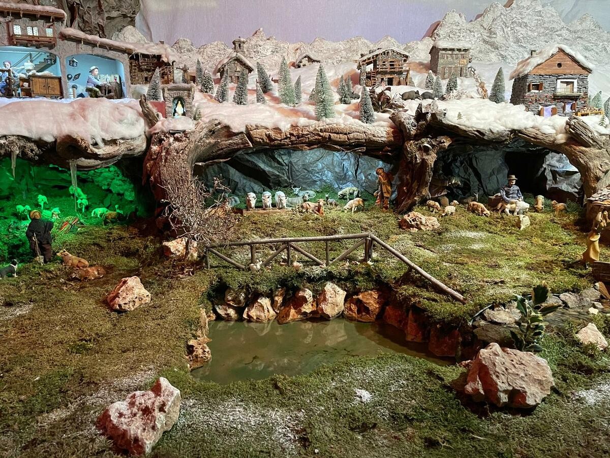 Di grande interesse e sempre molto apprezzata dai visitatori è la parte invernale che, con una realistica e copiosa nevicata, imbianca questa vallata animata da cervi, stambecchi, cinghiali e personaggi indaffarati a compiere le loro attività. Oggi il presepe copre una superficie di quasi 200 metri quadri e richiede circa 1200 ore di lavoro (a partire dalla seconda settimana di settembre).