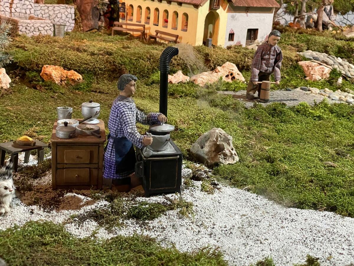 Attualmente si contano più di 120 statue in movimento, tutte realizzate artigianalmente dai componenti del gruppo. Questo allestimento rappresenta fedelmente i nostri tipici ambienti rurali (sia di pianura che alpini), facendo riaffiorare i ricordi dei mestieri che furono.