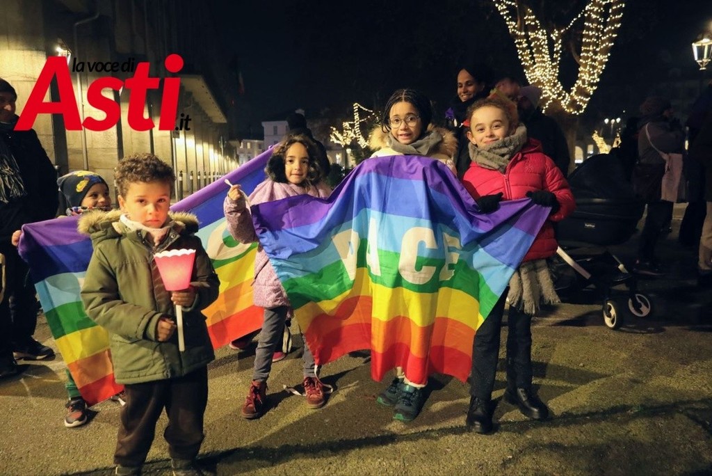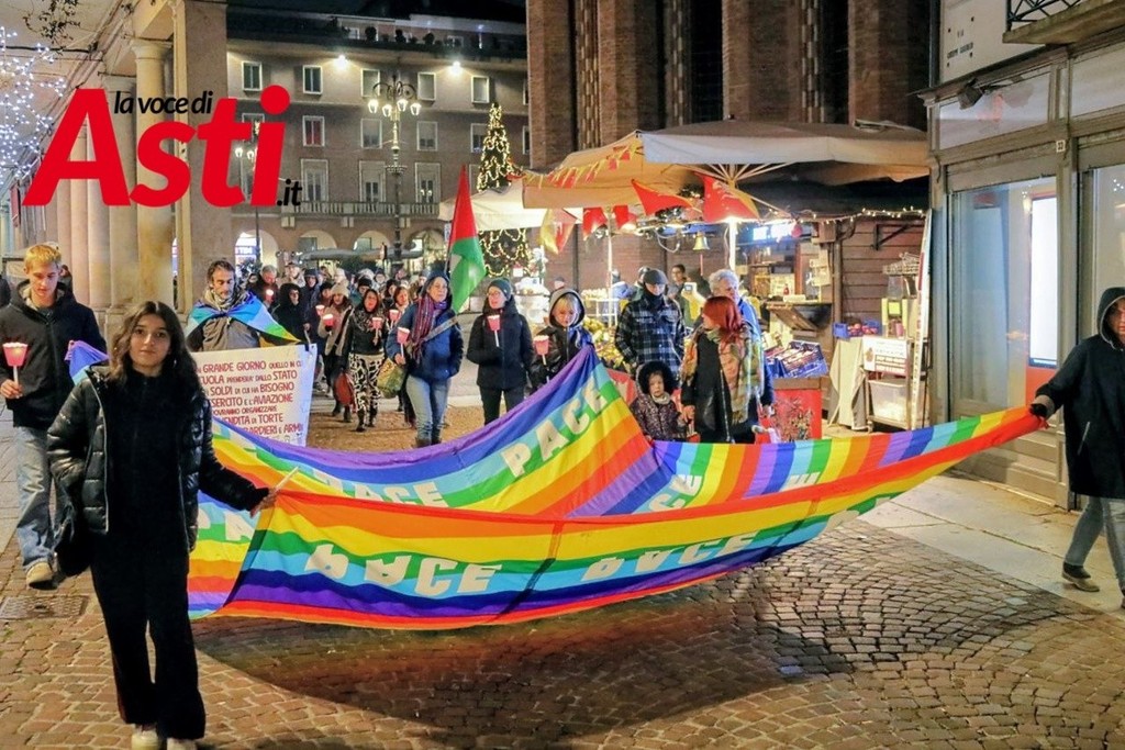Il percorso, accompagnato da bandiere della pace e canzoni a tema come Imagine di John Lennon e Generale di Francesco De Gregori, è partito da piazza San Secondo verso la prefettura di piazza Alfieri, piazza Roma, terminando in piazza Cattedrale.