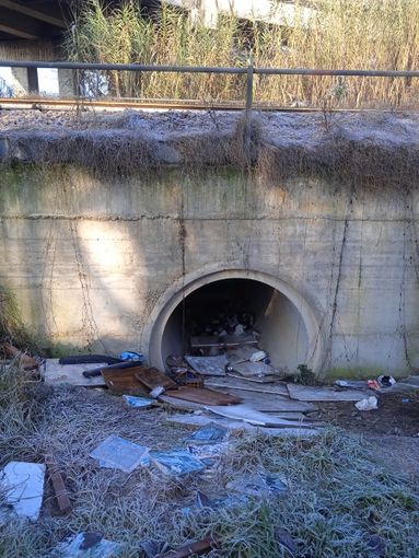 Oltre al danno estetico, la presenza di questi materiali solleva interrogativi sulla sicurezza pubblica. Particolarmente preoccupante è lo stato di un condotto di scolo situato lungo la strada, che appare quasi completamente ostruito da cartoni, buste di plastica e detriti vari.