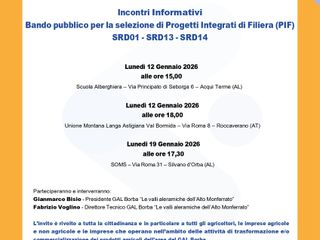 Roccaverano si prepara ad ospitare un incontro aperto alla cittadinanza sul bando pubblico per Progetti Integrati di Filiera (PIF), promosso dal GAL Borba “Le valli aleramiche dell’Alto Monferrato”.