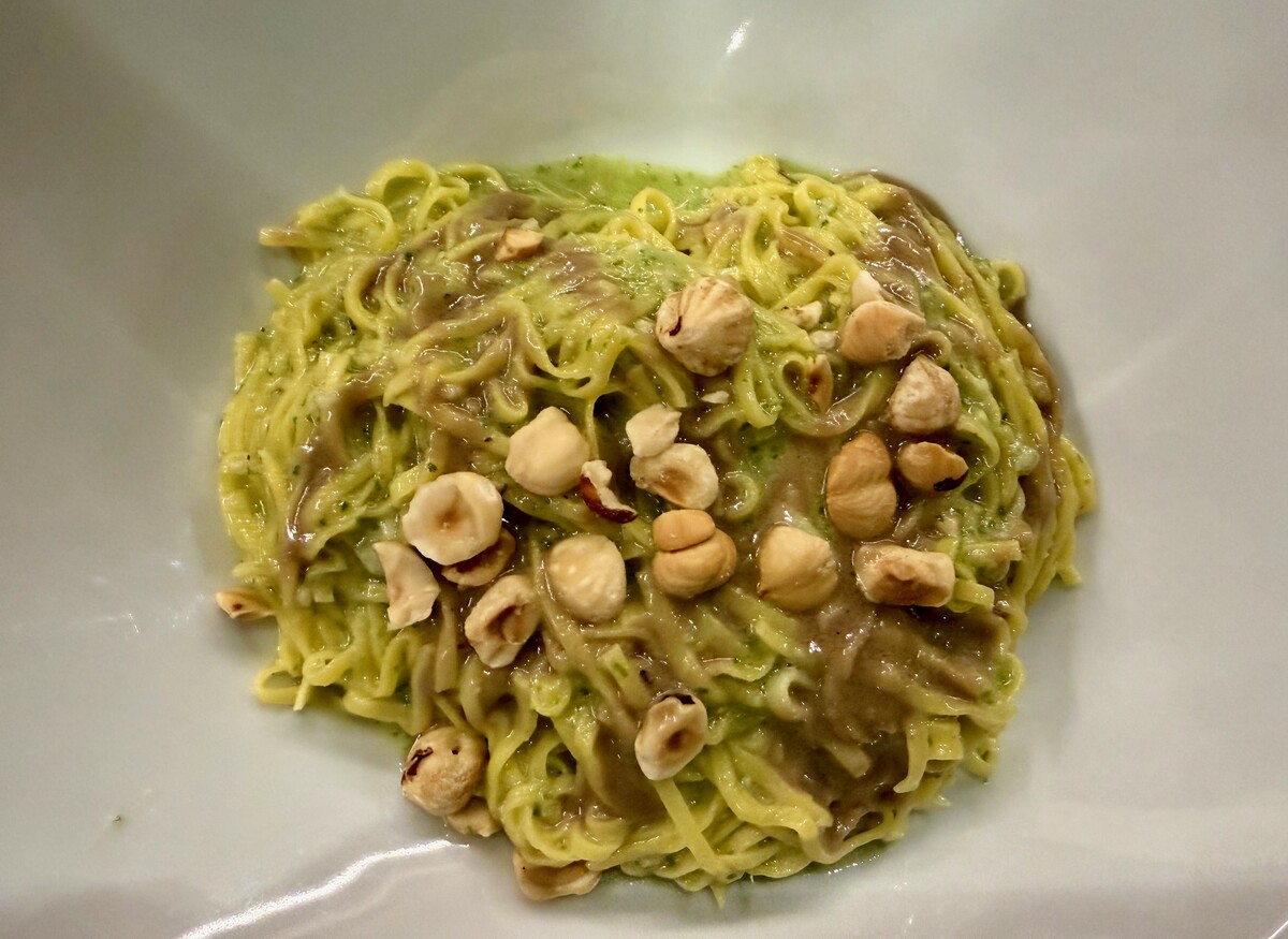 meno convincenti invece i finissimi Tajarin, serviti con un pesto di sedano e nocciola con salsa d’acciuga il cui amalgama deve ancora trovare la sua giusta armonia.