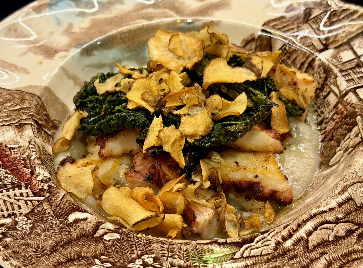 Essenziali invece, ma questa volta in linea con l’identità del piatto, i Plin di cappone di Morozzo, il cui ripieno viene valorizzato dall’equilibrato profumo di burro e timo;