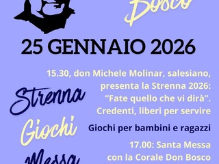 Venerdì 30 gennaio, alle 21, si terrà la celebrazione della Santa Messa officiata da don Paolino Siri, con l’accompagnamento della corale don Bosco.