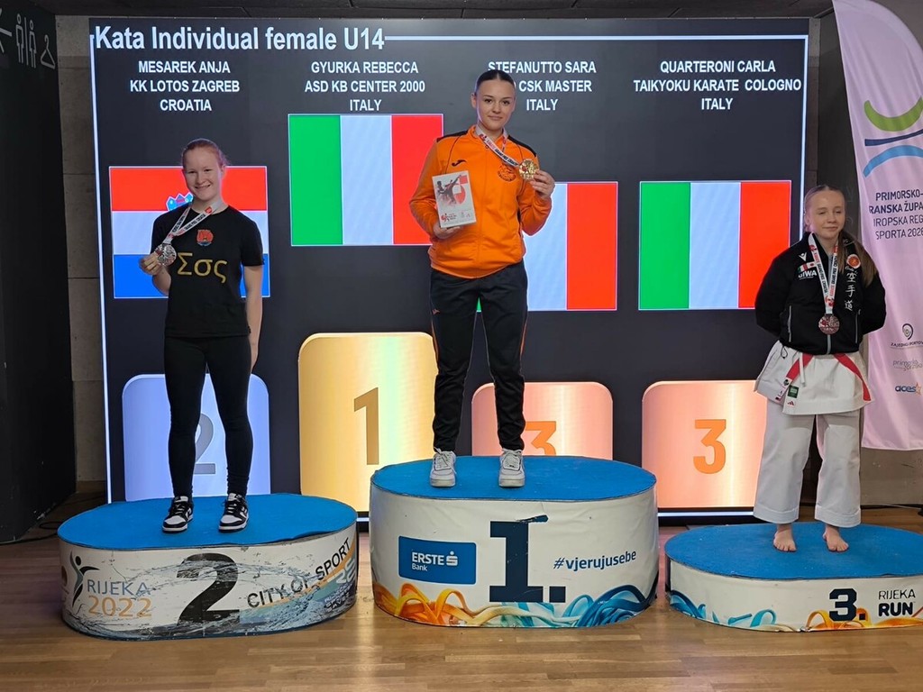 Continuano i successi per Rebecca Gyurka, atleta della scuola KB Center 2000 e giovane promessa del karate astigiano. Dopo l'argento ai campionati Italiani FIJLKAM Under 14, si è aggiudicata uno splendido primo posto alla sua prima esperienza internazionale.