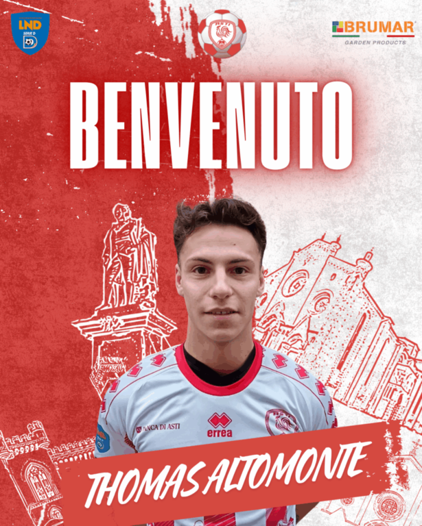 Dopo l’addio di Chillemi ufficializzato in settimana e la sfortunata notizia dell’infortunio di Mirco Vassallo, fermatosi in allenamento, in casa Asti era ormai chiara la necessità di intervenire sul mercato per rinforzare il reparto offensivo. Il direttore sportivo Tony Isoldi non si è fatto attendere e, pochi minuti fa, è arrivata l’ufficialità di un nuovo innesto: Thomas Diego Altomonte è un nuovo giocatore biancorosso.