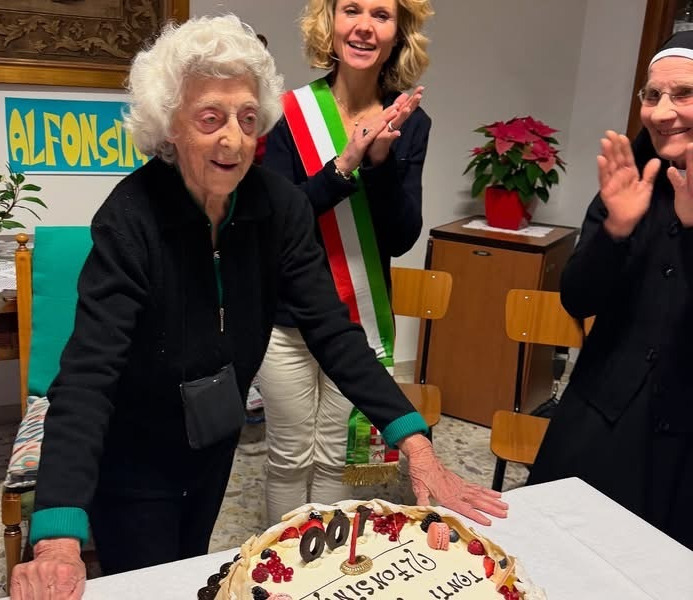 Tanta vita, tante esperienze e una ferma volontà di guardare sempre avanti. È la storia di Alfonsina Cortese, festeggiata venerdì 23 gennaio per i suoi cento anni presso il pensionato delle Suore Stefanine di Asti, in piazzetta S. Stefano. In occasione della ricorrenza, ha ricevuto dalle mani del presidente della Provincia, Maurizio Rasero, e del vicesindaco di Asti, Stefania Morra, il diploma di Patriarca dell’Astigiano.