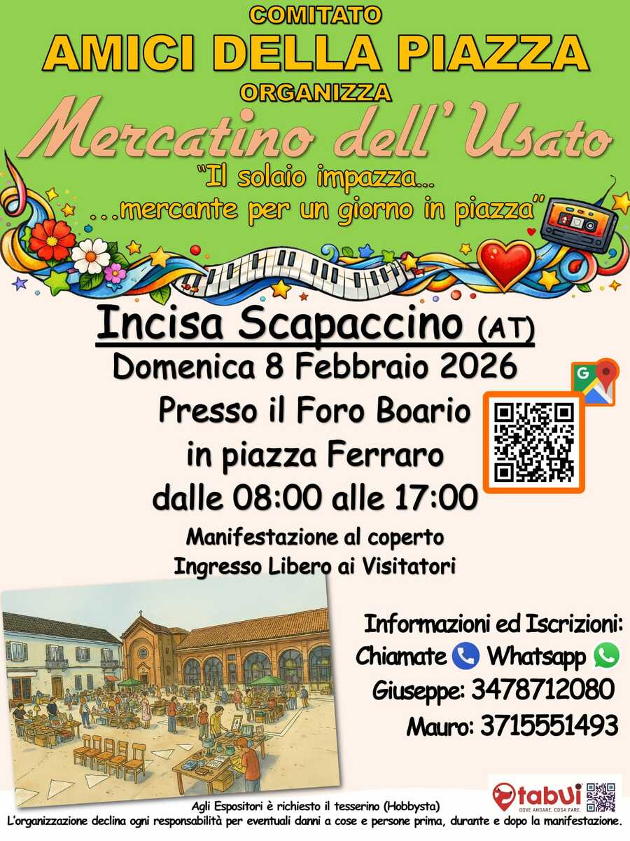 Domenica 8 febbraio, torna il “Mercatino dell’Usato” organizzato dal comitato Amici della Piazza. L’evento si svolgerà presso il Foro Boario, in piazza Ferraro, dalle 8 alle 17.