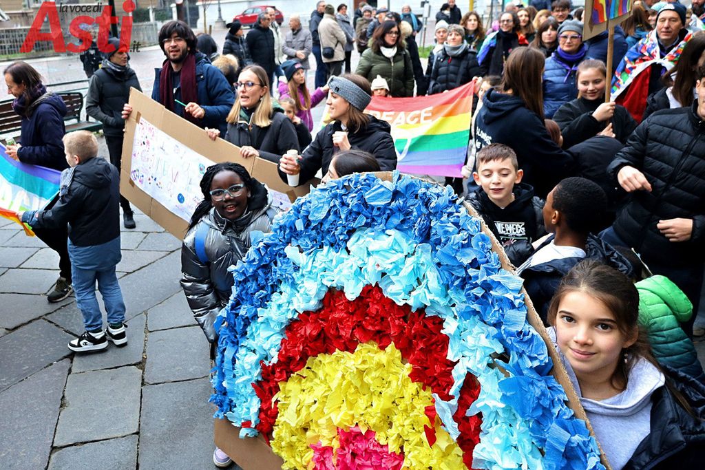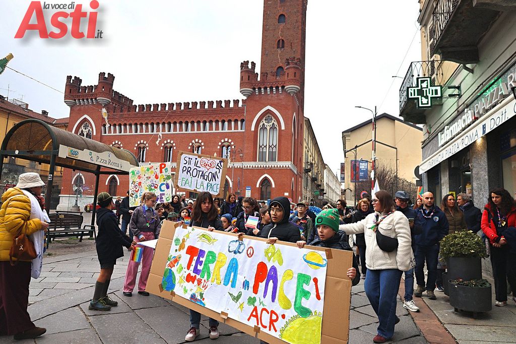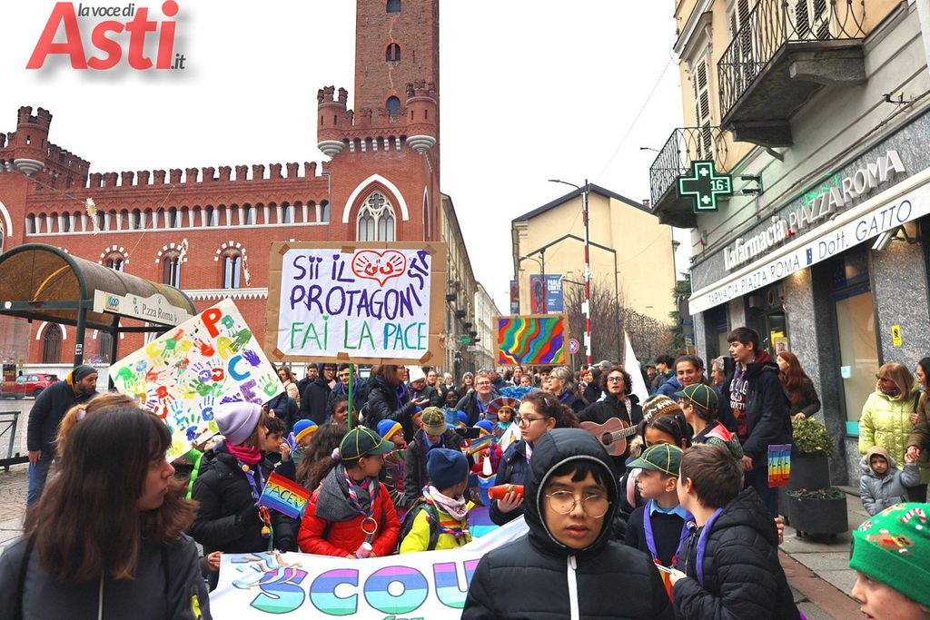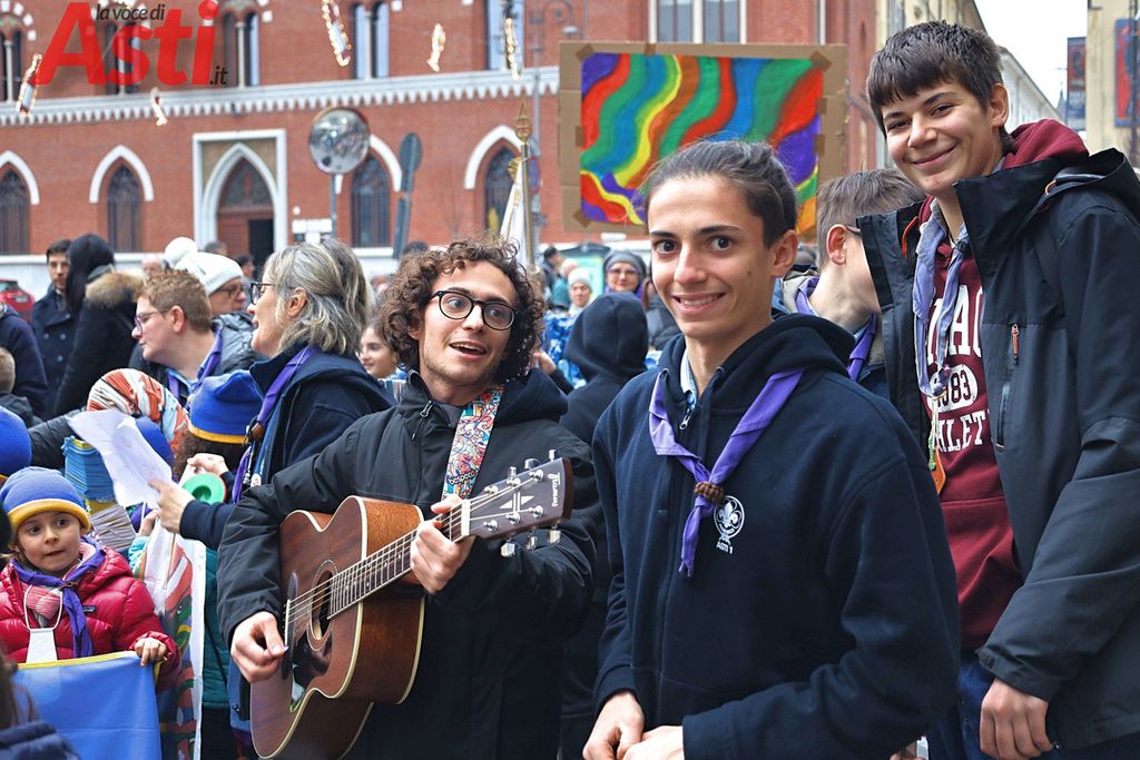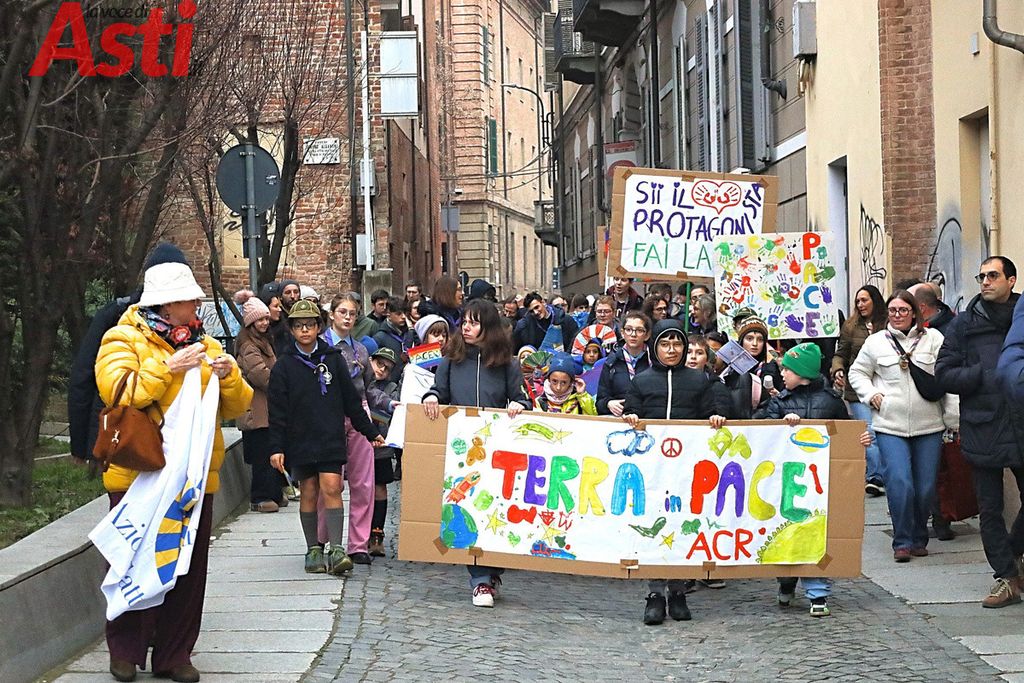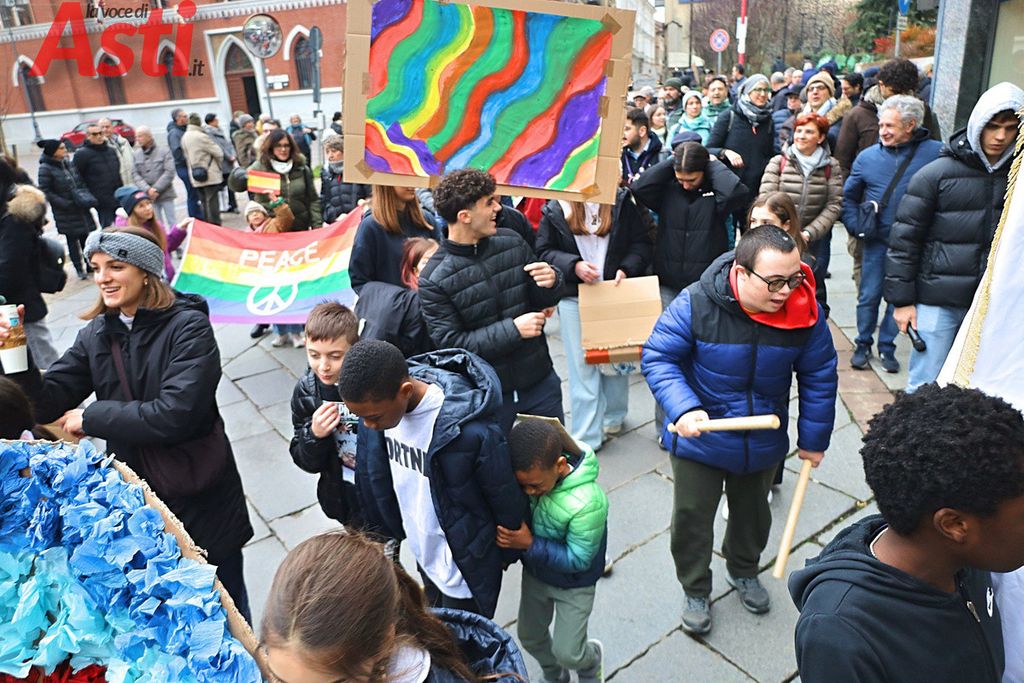 A seguire la Marcia della pace, partita alle 16 dal Foyer delle Famiglie e snodatasi per le vie del centro storico fino alla Collegiata di San Secondo. Un corteo colorato e intergenerazionale, con la partecipazione di bambini di tutte le età dai più piccoli sul passeggino, agli adolescenti.