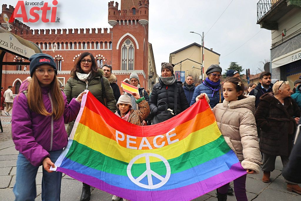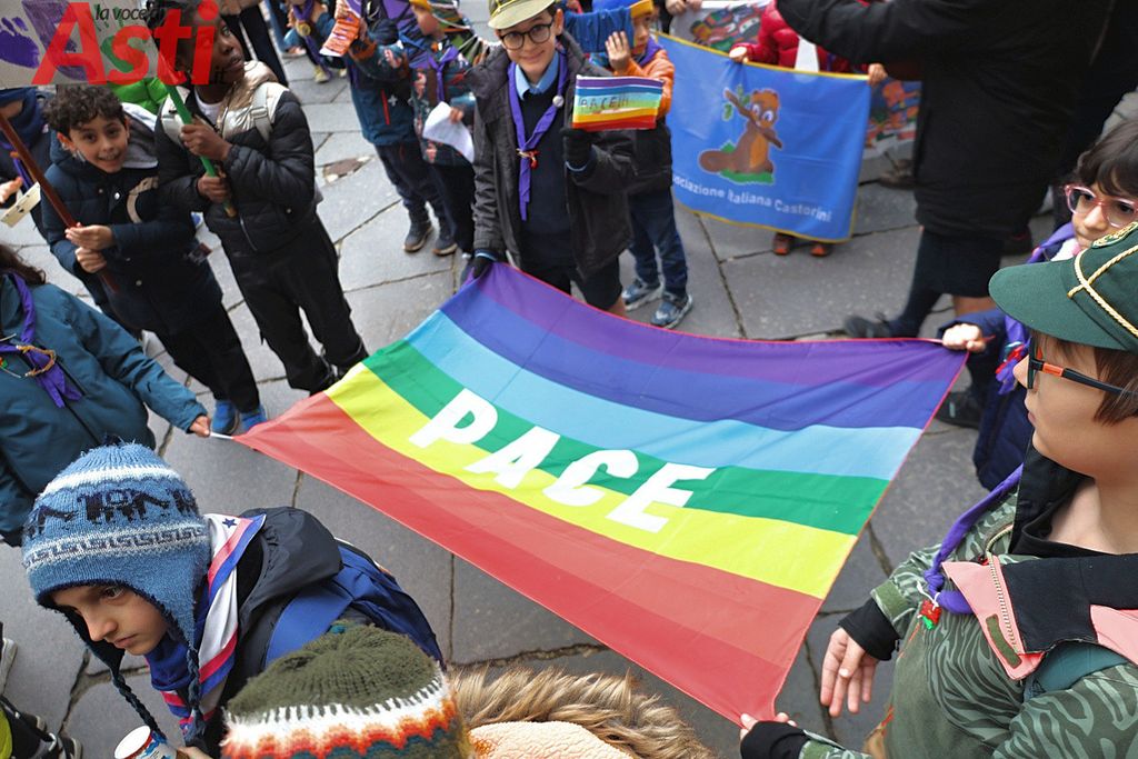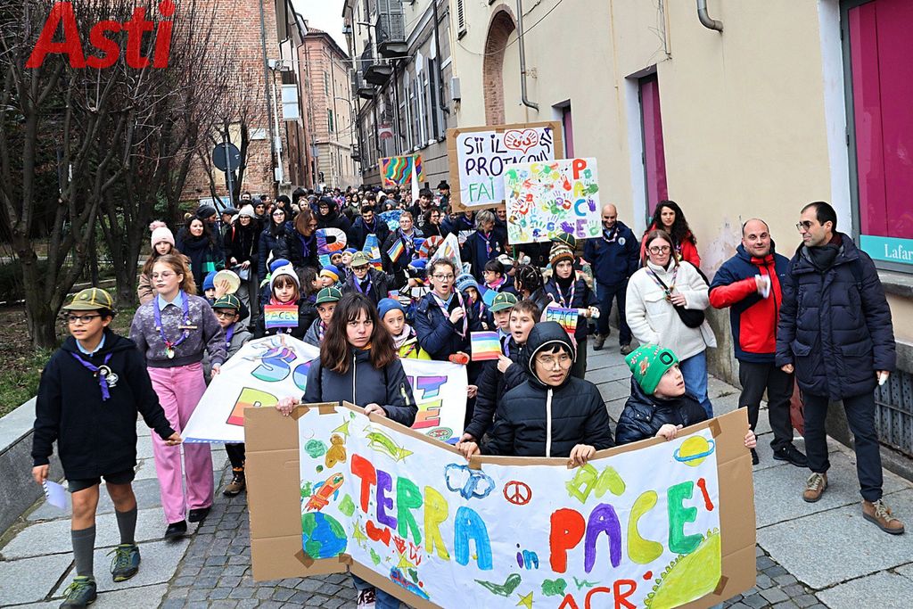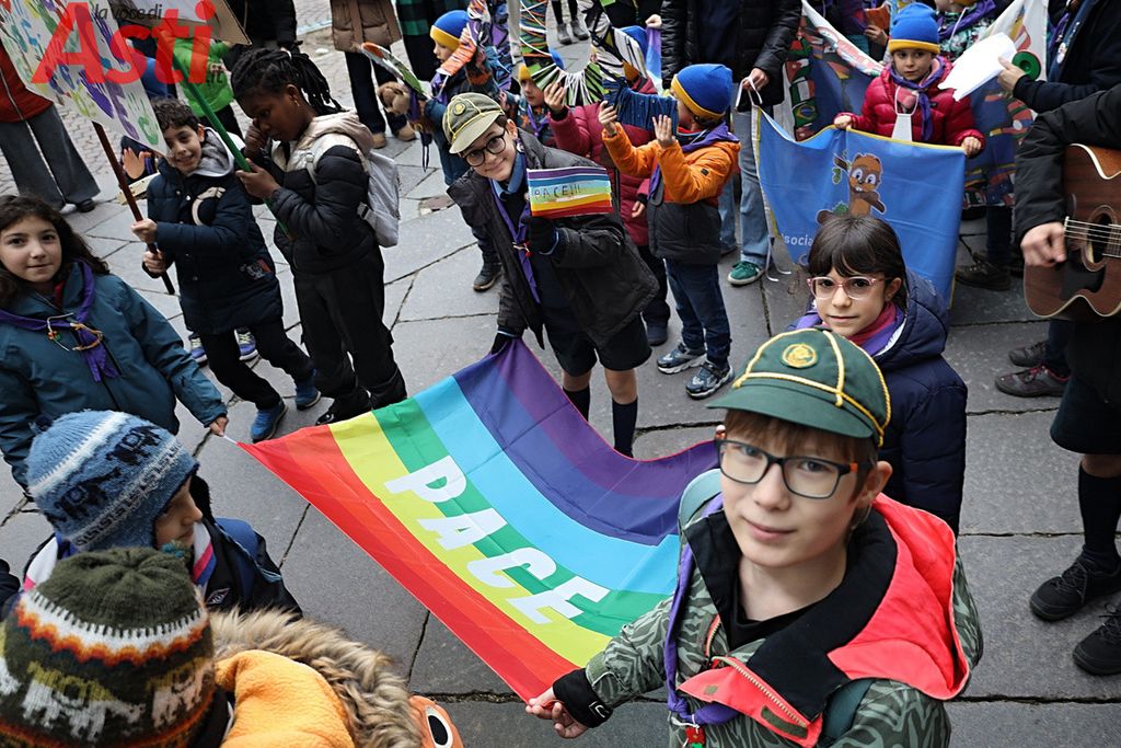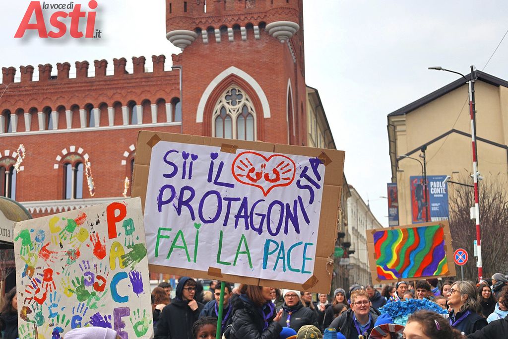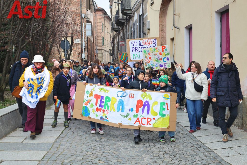 A seguire la Marcia della pace, partita alle 16 dal Foyer delle Famiglie e snodatasi per le vie del centro storico fino alla Collegiata di San Secondo. Un corteo colorato e intergenerazionale, con la partecipazione di bambini di tutte le età dai più piccoli sul passeggino, agli adolescenti.
