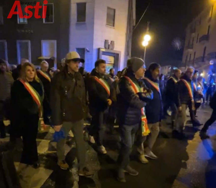 A guidare il corteo c'erano tanti sindaci del territorio, uniti nella fascia tricolore come argine istituzionale al disastro: in testa Simone Nosenzo (Nizza), Marco Biglia (Agliano) e Monica Masino (Montegrosso), presente Maurizio Rasero, presidente della Provincia. Ma stasera le cariche contavano poco: contava esserci, contava guardarsi in faccia e riconoscersi parte di una comunità ferita