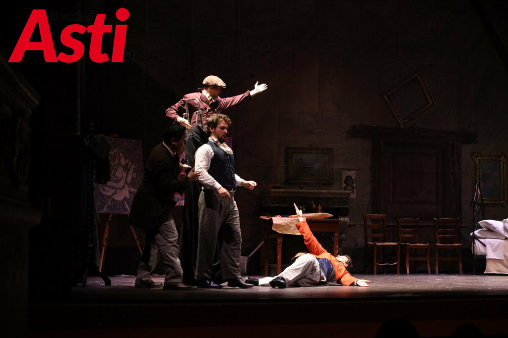 Sul palco, la vicenda universale di amore e fragilità tra Mimì e Rodolfo ha preso vita grazie a un cast di alto livello. Gli applausi più calorosi sono andati alla "padrona di casa", il soprano astigiano di fama internazionale Erika Grimaldi, che ha vestito i panni della protagonista con intensità e maestria. Accanto a lei, hanno convinto le interpretazioni di Haiyang Guo (Rodolfo), William Allione (Marcello), Aleksandrina Mihaylova (Musetta), Francesco Cascione (Schaunard), Davide Sodini (Colline) e Armando Ariostini nei doppi panni di Benoit e Alcindoro. La regia di Stefano Ferrara e la direzione d’orchestra del maestro Aldo Salvagno, alla guida dei musicisti della Fondazione Fossano Musica, hanno tessuto una trama musicale e scenica impeccabile, arricchita dalle opere e dalla performance dell'artista astigiano Gian Luigi Delpin, in arte MAC, che ha donato all'allestimento un tocco visivo unico.
