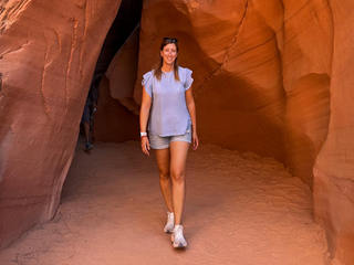 Arriviamo a Page, dove si trova Horseshoe Bend, l’ansa perfetta del fiume Colorado, una forma così regolare da sembrare disegnata. Poco distante c’è Lake Powell, un lago artificiale incastonato tra le rocce rosse. Poi Antelope Canyon. Dove abbiamo scelto Canyon X, meno affollato e più raccolto. Qui la luce entra lentamente, scivola sulle pareti e le scolpisce con le ombre. È il luogo che più di tutti mi è rimasto addosso. Il fatto che non lo attraversi soltanto: lo vivi. Si entra solo con guide navajo, che raccontano la storia del canyon e il suo significato profondo. Cammini dentro una scultura modellata dall’acqua e dal vento in migliaia di anni. A un certo punto, una guida inizia a suonare uno strumento tradizionale. Il suono rimbalza sulle pareti, amplificato dallo spazio. In quel momento capisci che non stai semplicemente osservando un luogo, ma partecipando a qualcosa di più grande.