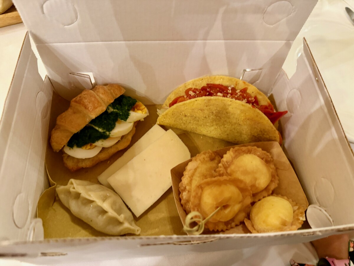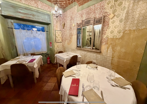 Nei piatti e nei box che ho assaggiato ho trovato una proposta varia e fantasiosa, segno evidente dell’energia che anima la giovane e vivace brigata. Eppure, tra un assaggio e l’altro, ho avuto la sensazione che la legittima spinta alla sperimentazione finisse talvolta per prendere il sopravvento su quella memoria profonda che nelle sale del Martinet si avverte ancora con forza. Senza voler mettere in discussione le più che comprensibili scelte di Roberta e dei suoi ragazzi, confesso che dalla merenda sinoira mi sarei aspettato un legame più netto con l’idea di un pasto serale contadino: forse meno rifinito, ma più diretto. E, soprattutto, più decisamente piemontese nei sapori e nel respiro complessivo.