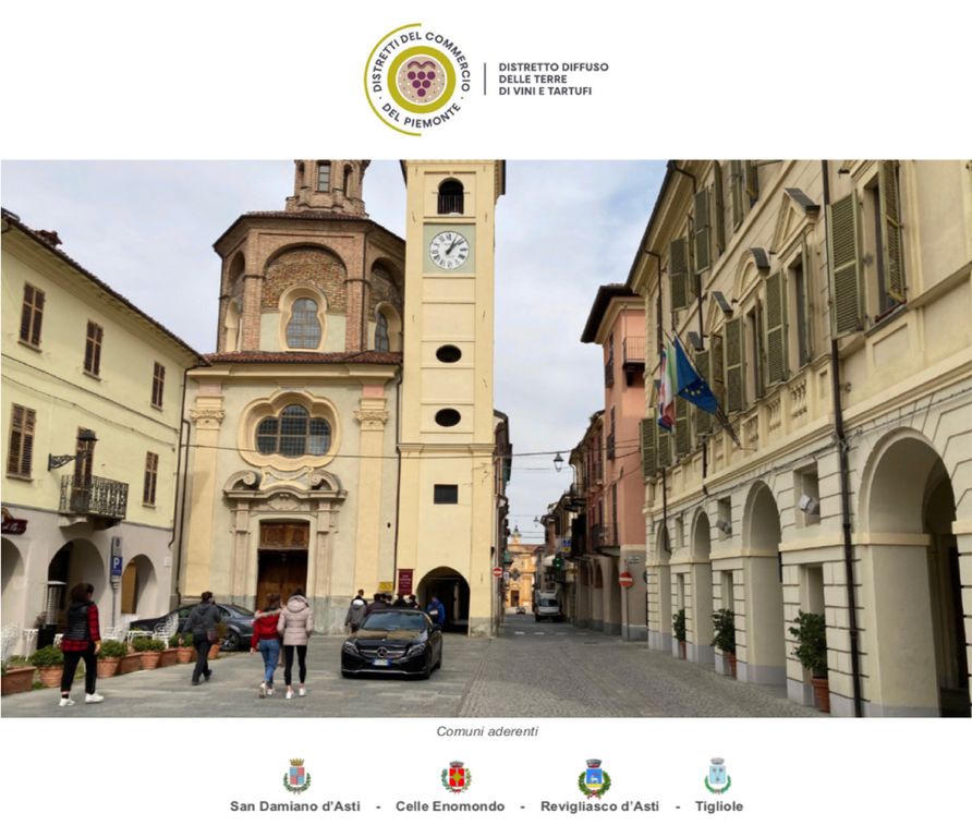 Il Distretto del Commercio “Terre Divine di Tartufi” vede come Comune capofila San Damiano d’Asti e comprende i Comuni di Celle Enomondo, Tigliole e Revigliasco. Per maggiori informazioni chiamare la segreteria del Comune di San Damiano d’Asti al numero 0141975056.
