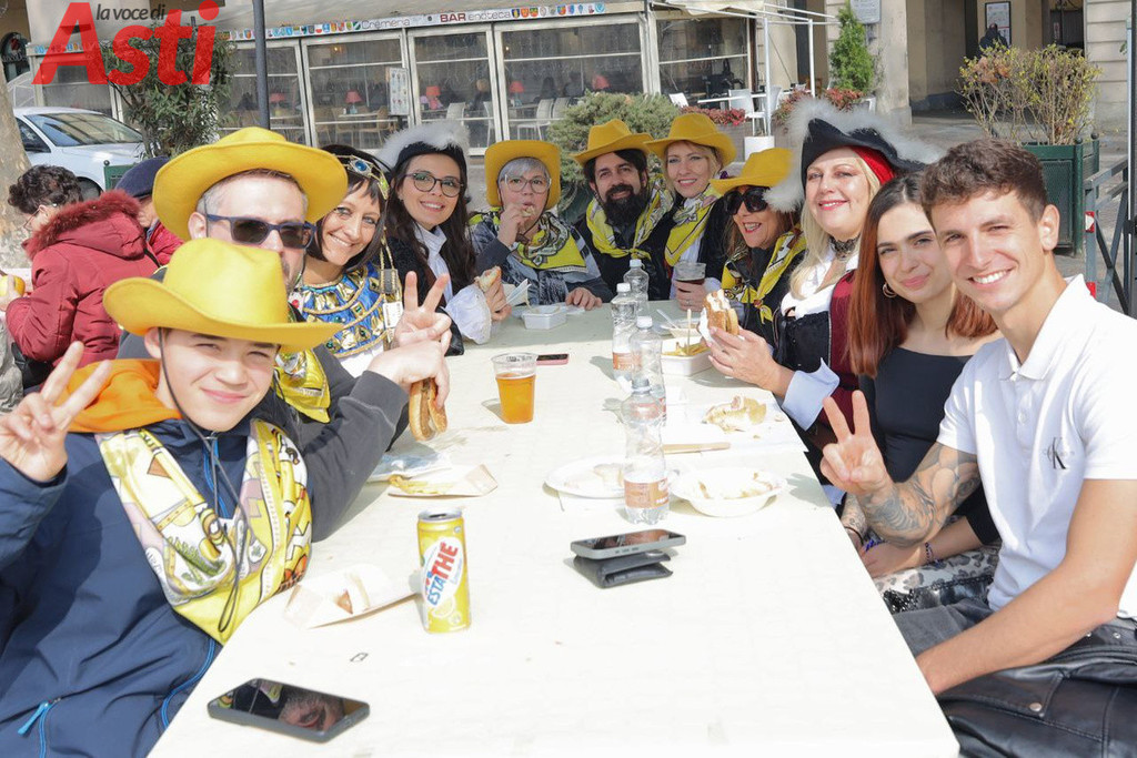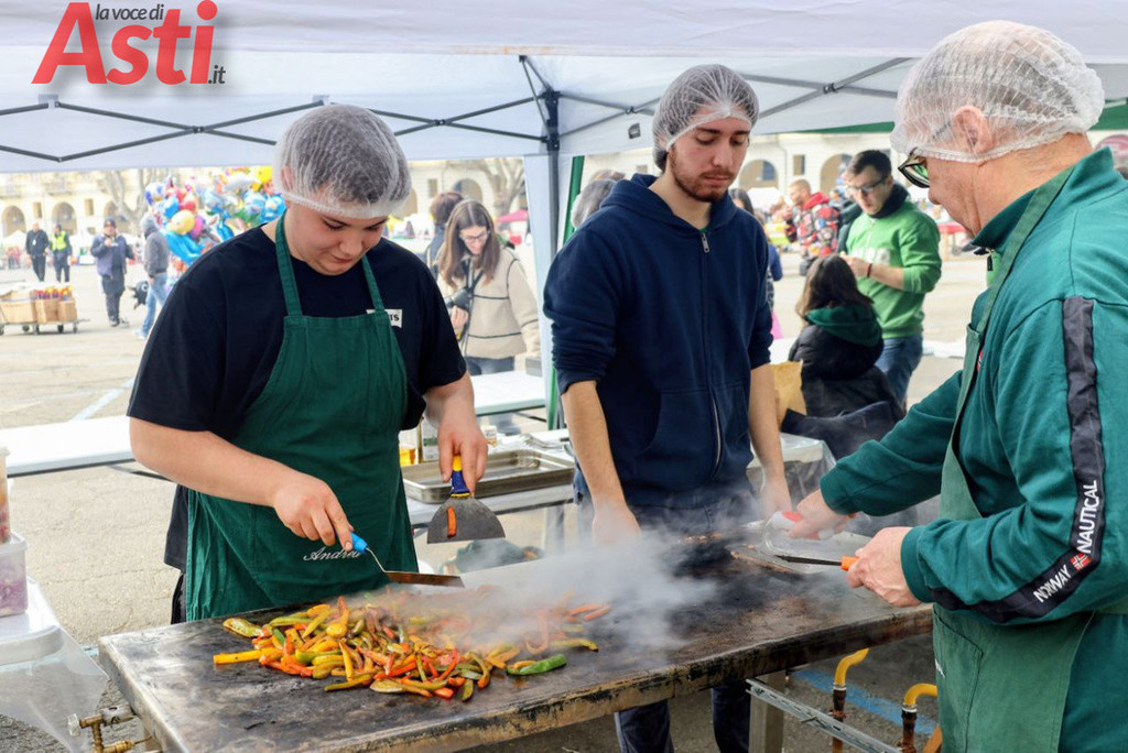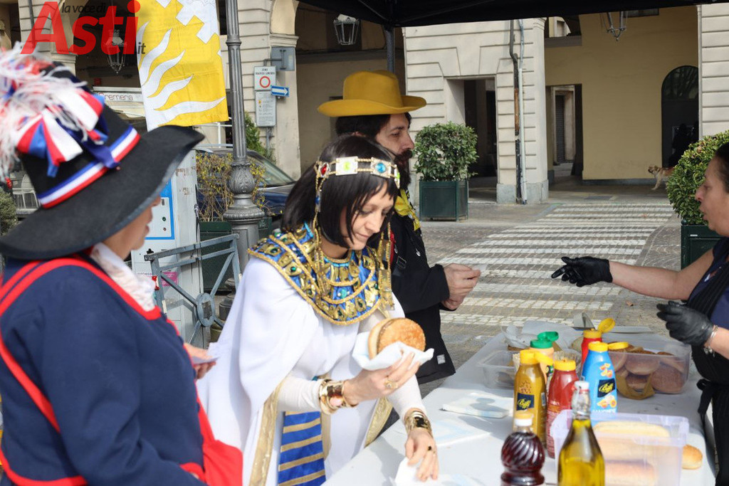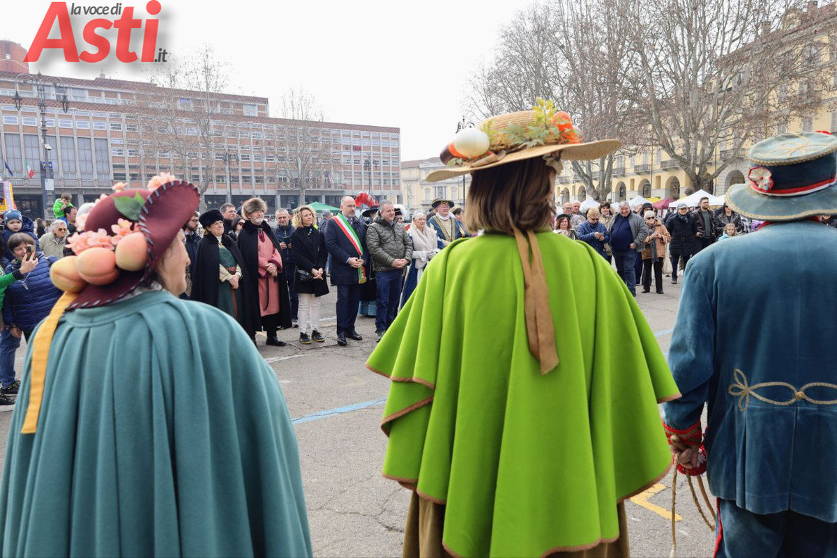 La manifestazione ha preso vita in piazza Alfieri dal mattino. A inaugurare la giornata sono state le bancarelle dell'artigianato creativo e dell'agroalimentare, curate dal consorzio Euro Fiva 2000 e da Coldiretti - Campagna Amica, che hanno offerto al pubblico le migliori specialità tipiche del territorio. Alle 11.30 si è tenuto il tradizionale incontro istituzionale tra la Famiglia delle maschere astigiane, gli amministratori locali e il Collegio dei rettori, un momento ufficiale presto ravvivato dall'animazione musicale delle Signorine Maramao e dall'apertura degli attesi stand gastronomici gestiti dai comitati del Palio.