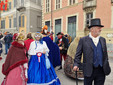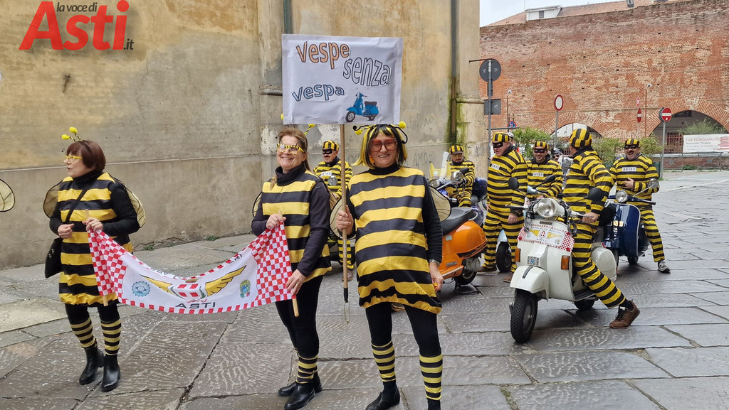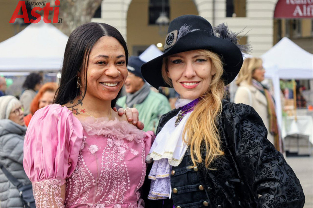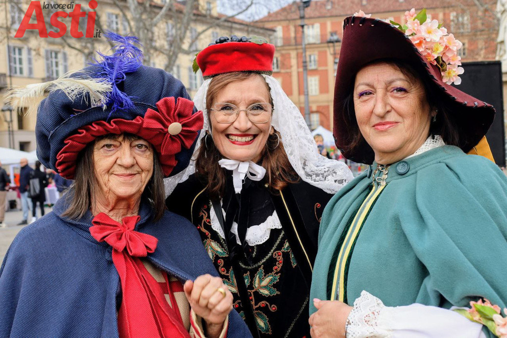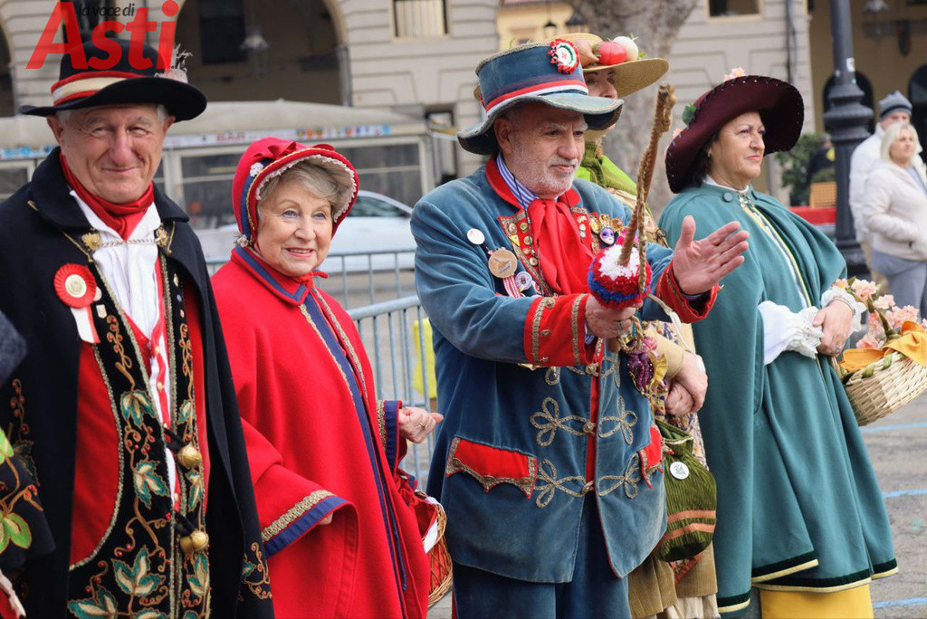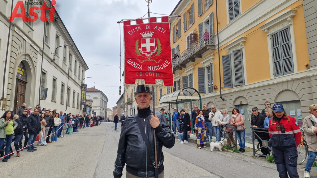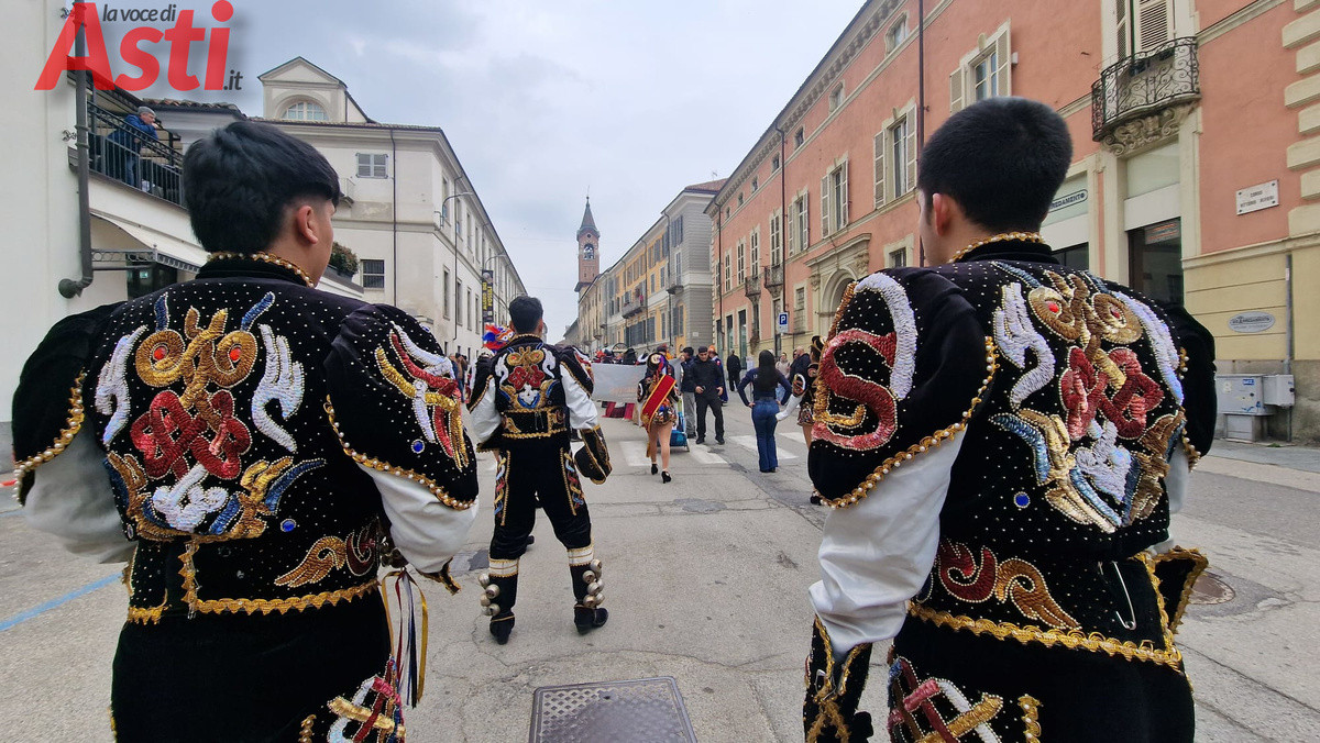 Il clou dell'evento è scattato alle 14.30 con la spettacolare sfilata che, partendo dalla suggestiva cornice della Torre Rossa, ha percorso tutto corso Alfieri attraversando due fitte ali di folla festante. Ad aprire il lungo e vivace serpentone ci ha pensato la banda Città di Asti "G. Cotti", seguita a ruota dalle Maschere astigiane e da una nutrita rappresentanza di figuranti provenienti da altre regioni. Subito dietro, si sono susseguiti i vivaci gruppi dei comitati paliofili, i coloratissimi bambini delle scuole cittadine e gli immancabili vespisti del Vespa club Alfieri. Non sono mancate le sorprese per i più piccoli, come le simpatiche Tartarughe Ninja e i supereroi a bordo di un'iconica Fiat 500. Il pubblico ha tributato applausi calorosi, per l'incredibile energia e la cura estetica, ai balli tradizionali sudamericani portati in scena dalla Fraternidad artistica Legendarios sambos caporales e agli splendidi costumi di alta sartoria creati da Nives Mafezzoli.