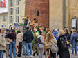 Dopo aver percorso l'isola pedonale, la variopinta carovana si è ricongiunta in piazza Alfieri, dove l'animazione è proseguita in un clima di contagiosa convivialità. Il pomeriggio è stato scandito dalla selezione di DJ Gigi, dalle travolgenti danze folkloristiche di Simone Campa & La Paranza del Geco e da numerose attività pensate appositamente per le famiglie. I bambini hanno potuto divertirsi senza sosta nell'area gonfiabili, con il truccabimbi, partecipando ai giochi di un tempo organizzati da Chapitombolo e facendo amicizia con i pony del circolo ippico Casanova. C'è stato spazio anche per importanti momenti di inclusione grazie alle coreografie collettive della Social Dance, che hanno fatto ballare l'intera piazza. La giornata si è infine conclusa con la consegna ufficiale degli attestati di partecipazione a tutte le scuole, ringraziate per il loro prezioso contributo nel colorare la città.