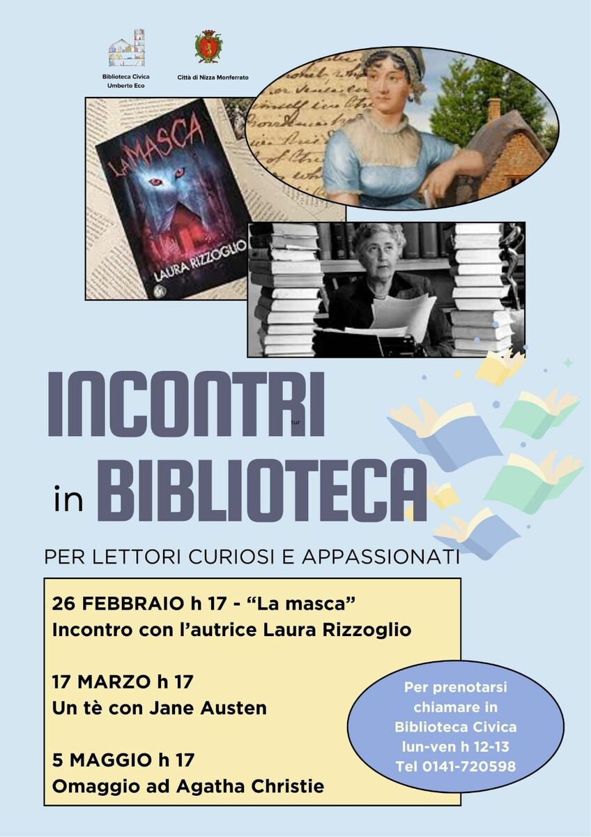 Dopo l’appuntamento di giovedì 26 febbraio, con la presentazione de “La masca” di Laura Rizzoglio, la Biblioteca Civica “Umberto Eco” di Nizza Monferrato ha in programma altri due incontri.