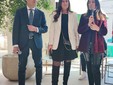 Da sinistra, Francesco Nova, Chiara Osnago Gadda, Massimo Senini e Mariano Giovanni Carozzi, davanti al tavolo/scultura realizzato dall’artista Didone, con il piano in materiale NOAI di Senini.