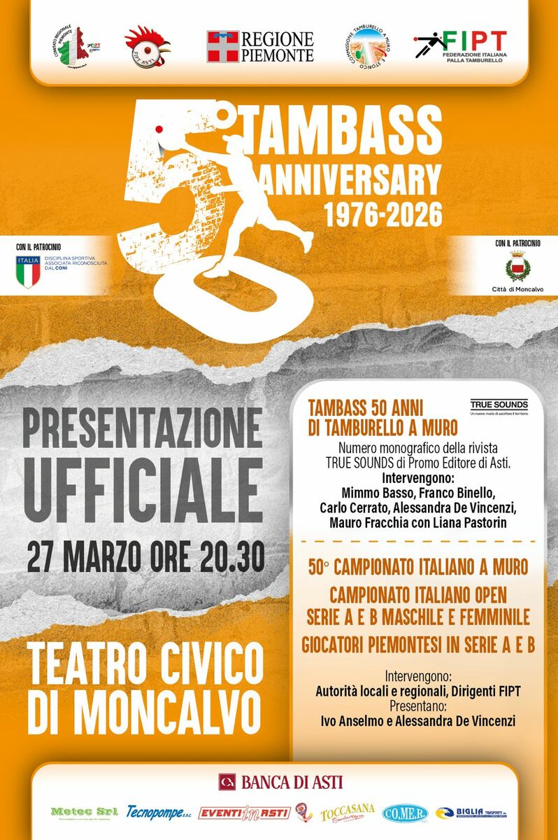 Per celebrare questo anniversario, l’appuntamento è per venerdì 27 marzo alle ore 20.30 presso il Teatro di Moncalvo. Quella in programma non sarà una semplice presentazione di calendari e squadre, ma una vera e propria festa dedicata alla memoria e al futuro di questo sport. Il piatto forte della serata sarà la presentazione di “True Sounds”, una rivista speciale edita da Promo Editore di Asti, interamente concepita come un tributo cartaceo a cinquant'anni di storia.