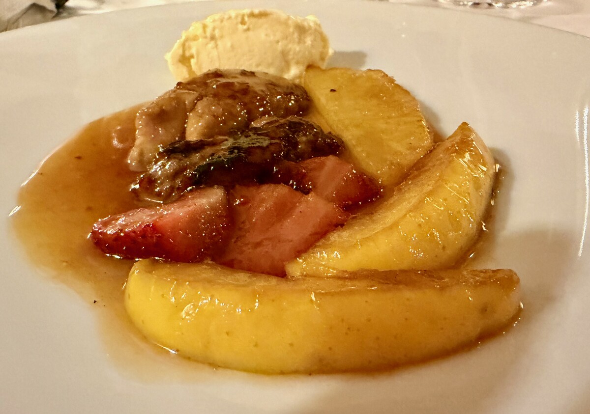 e di grande livello la Scaloppa di fois gras al passito accompagnata da pezzi di frutta e valorizzata da un inappuntabile gelato Lemon Curd.