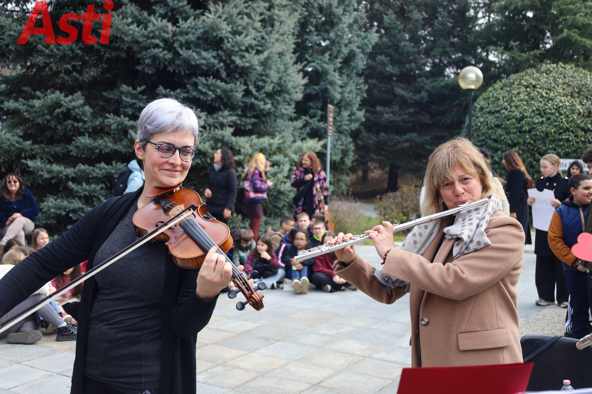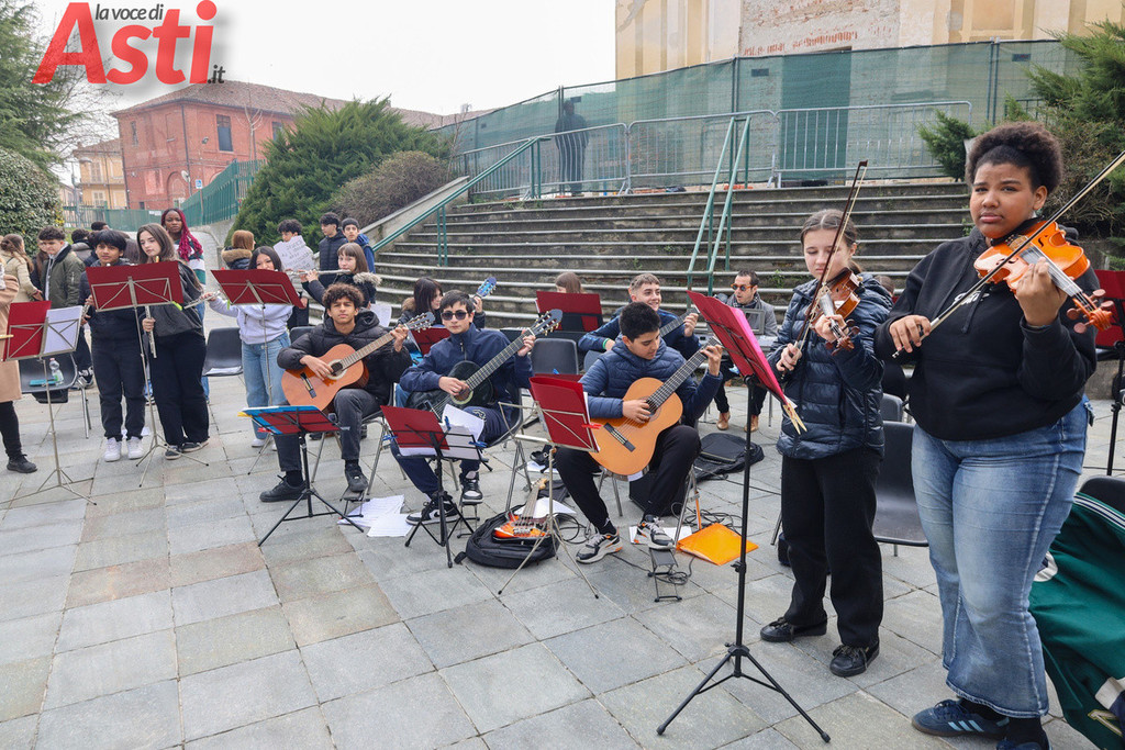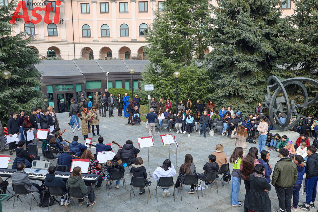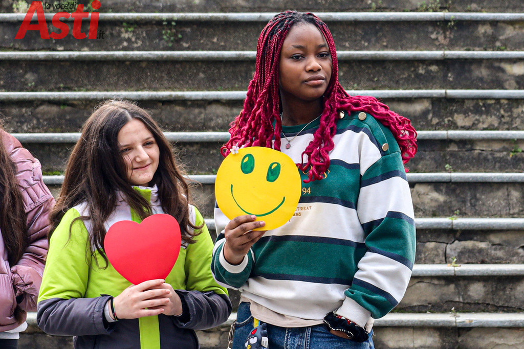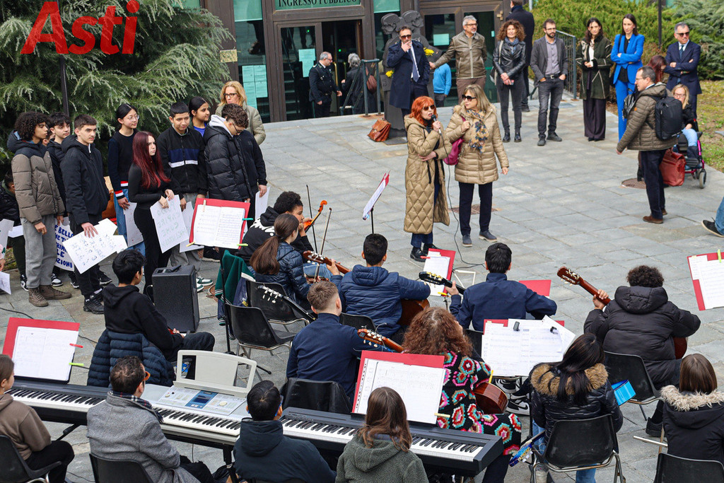 "Sei una donna decisa", recita un cartello tracciato con vernice rossa e tenuto stretto da un ragazzo in prima fila. "Non mi faccio condizionare dagli altri", rivendica quello accanto a lui, mentre dal gruppo spuntano altri messaggi inequivocabili. "Vestiti come ti senti a tuo agio", "Guidi bene", "Agisci come meglio ritieni e rispetta l'altra". Frasi all'apparenza semplici ma che, lette tutte insieme sulle gradinate, compongono un alfabeto nuovo per la nostra comunità. Nello spettacolo di parole e musica, nato dalla sinergia con le istituzioni forensi astigiane e la Rete di Scuole per la promozione dei valori della Giustizia, gli studenti non si sono limitati a denunciare il sessismo, ma hanno messo in piazza la sua antitesi.
