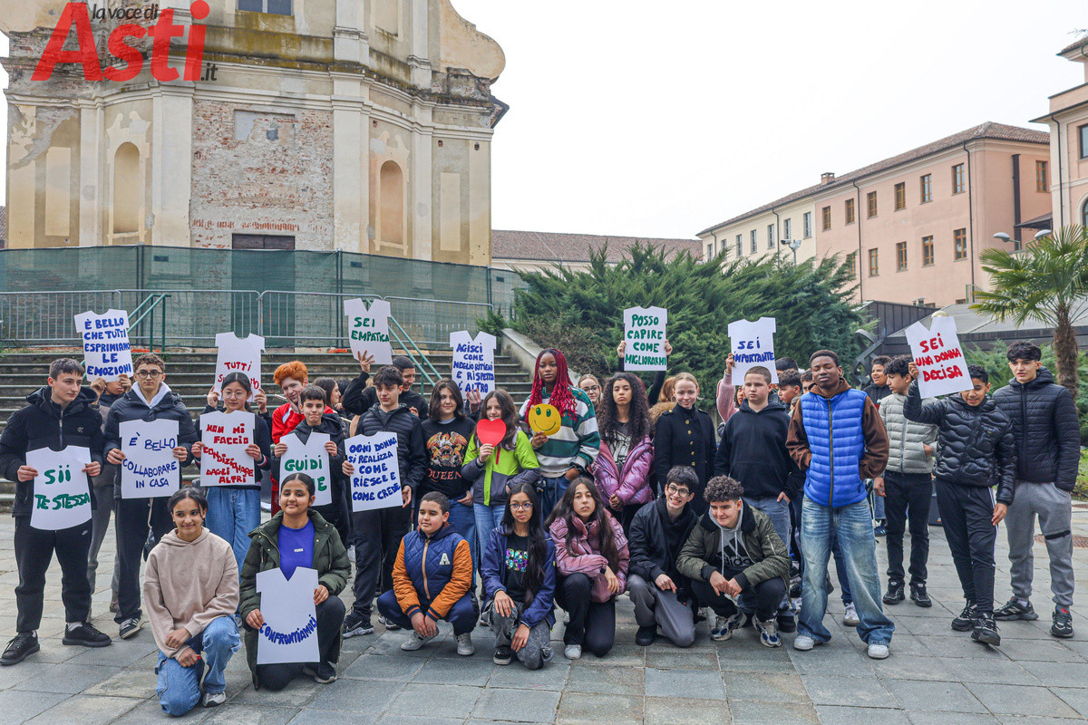 Le parole pesano e a volte basta scriverle a caratteri cubitali su un pezzo di cartone a forma di maglietta per capirne la forza. L'hanno fatto le ragazze e i ragazzi della scuola secondaria di primo grado Goltieri, che questa mattina si sono presi la scena all'esterno del Tribunale di Asti. Non una semplice recita, ma un'azione collettiva intitolata "Stereotipi", in cui i cartelli sollevati dagli studenti sono diventati veri e propri scudi contro i luoghi comuni di genere, spiegando ai passanti il senso più profondo dell'otto marzo.