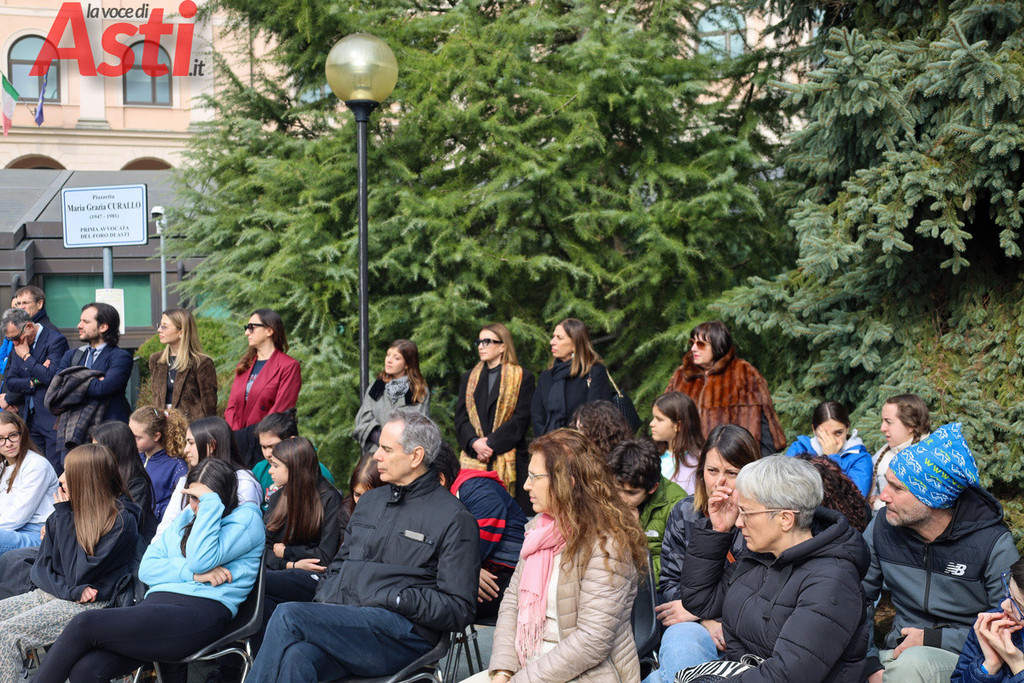 Vedere un gruppo di adolescenti sollevare in alto pensieri come "Ogni donna si realizza come riesce e come crede" restituisce un senso profondo al grande lavoro educativo fatto nelle aule della Goltieri. I giovani hanno scelto di farlo in un luogo simbolo: quella piazzetta intitolata a Maria Grazia Curallo, la prima donna avvocato della città, che molto prima di loro aveva dovuto faticare per infrangere il soffitto di cristallo del Palagiustizia astigiano. La performance all'aperto, andata in scena a mezzogiorno, ha avuto così il grande merito di portare il dibattito fuori dalle stanze degli addetti ai lavori.​