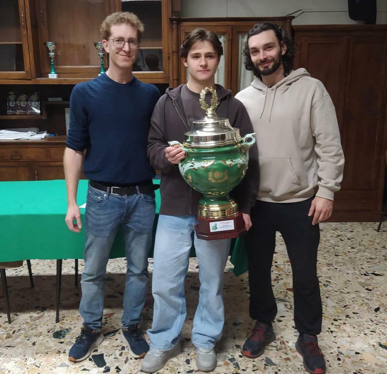 Alle sue spalle, secondo con 4 punti, Lorenzo Cibellis, sedici anni, in corsa per il titolo assoluto fino all'ultima mossa dell'ultimo turno: anche per lui il salto a "Candidato Maestro", una categoria che in pochi riescono a raggiungere. Il circolo "Sempre Uniti" — secondo per numero di tesserati in tutto il Piemonte — può dunque festeggiare una doppia promozione in un colpo solo.