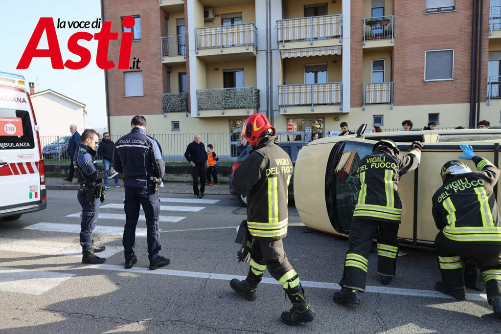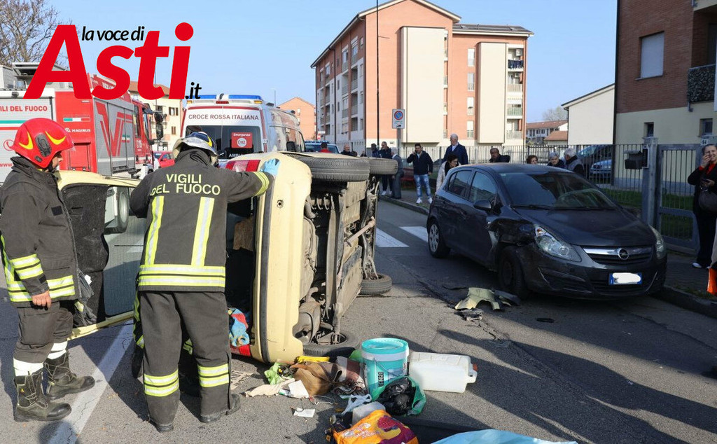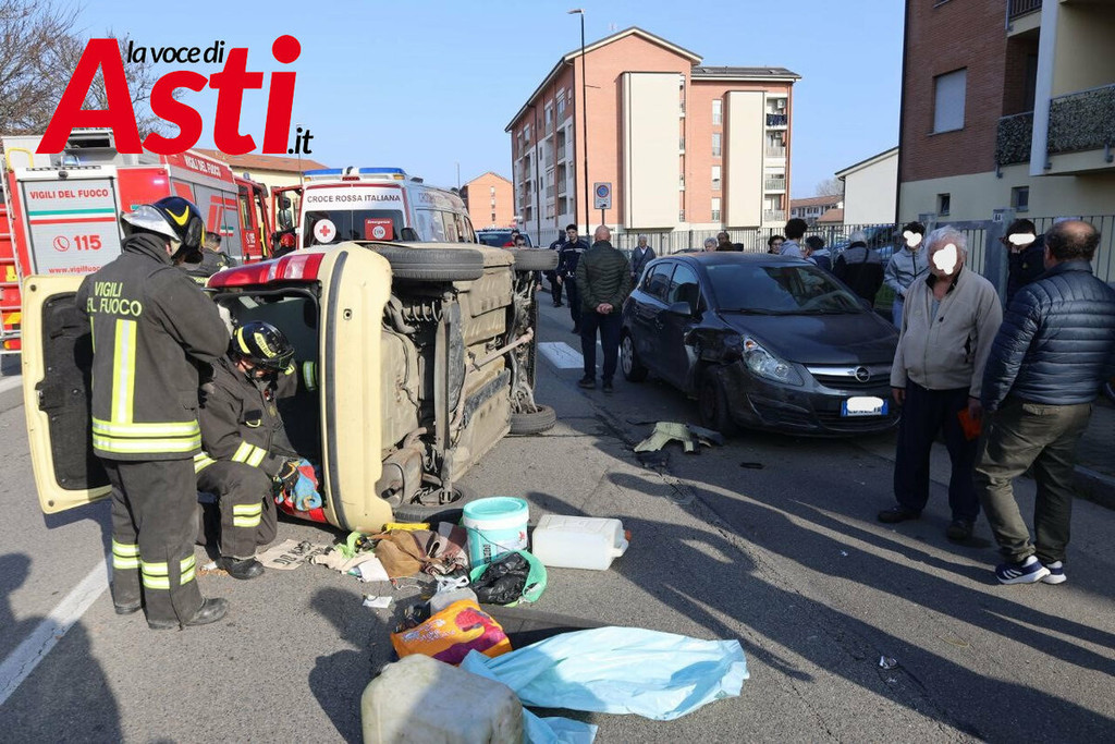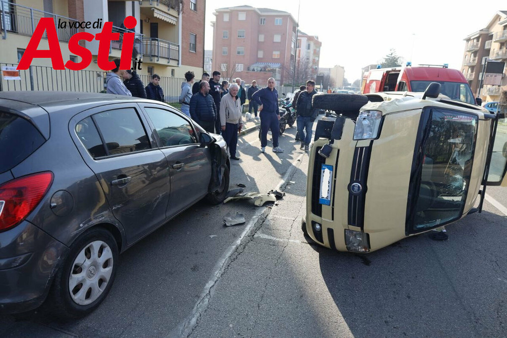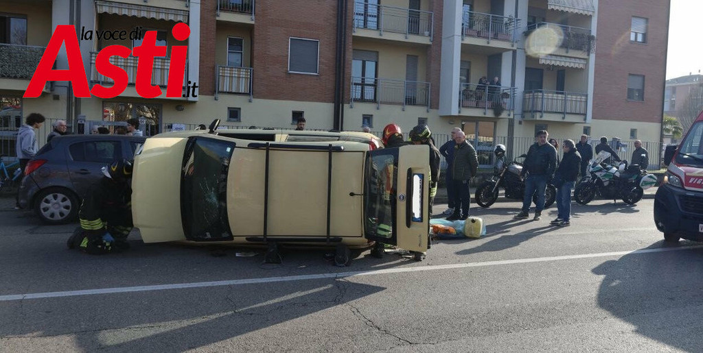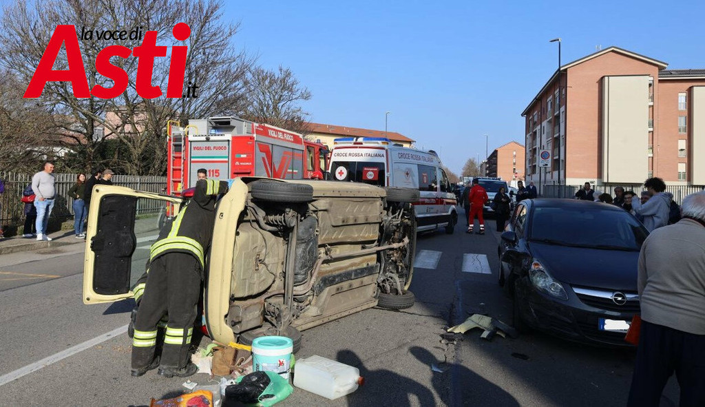 Un violento incidente stradale si è verificato nel primo pomeriggio ad Asti, precisamente in via Torchio. Intorno alle 15.40, per cause ancora in fase di accertamento, una Fiat Panda ha urtato una Fiat Punto in sosta, finendo per ribaltarsi sulla carreggiata a seguito del forte impatto.