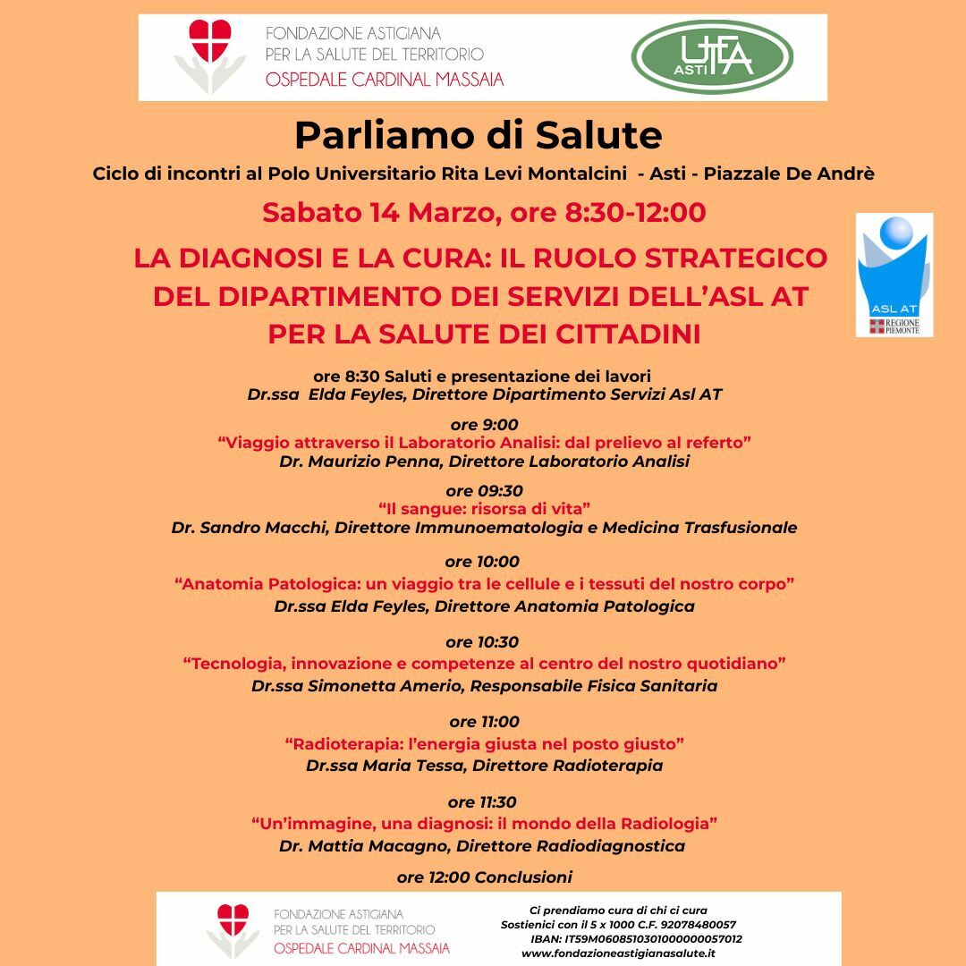La mattinata sarà dedicata al ruolo strategico del Dipartimento dei Servizi dell’Asl AT, una delle strutture centrali dell’ospedale Cardinal Massaia: un sistema di competenze e tecnologie che opera ogni giorno a supporto dei percorsi di cura, contribuendo in modo determinante alla precisione delle diagnosi e all’efficacia delle terapie.
