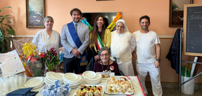 A rendere omaggio alla neo-centenaria sono arrivate anche le autorità locali: il vice presidente della Provincia di Asti Simone Nosenzo e la consigliera comunale Maria Francesca Rovaglia, delegata dal sindaco Carla Scarrone, hanno portato le congratulazioni ufficiali dell'ente, consegnando a Laura Nigra una pergamena commemorativa. Nella fotografia che immortala il momento, accanto alla festeggiata compaiono anche suor Sandra e il personale sanitario.