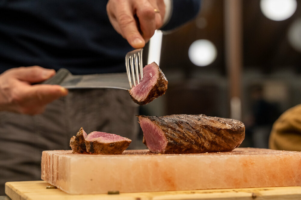 Giostra di tagliate di manzo con contorno di stagione abbinata a Glacier – Imperial porter.
