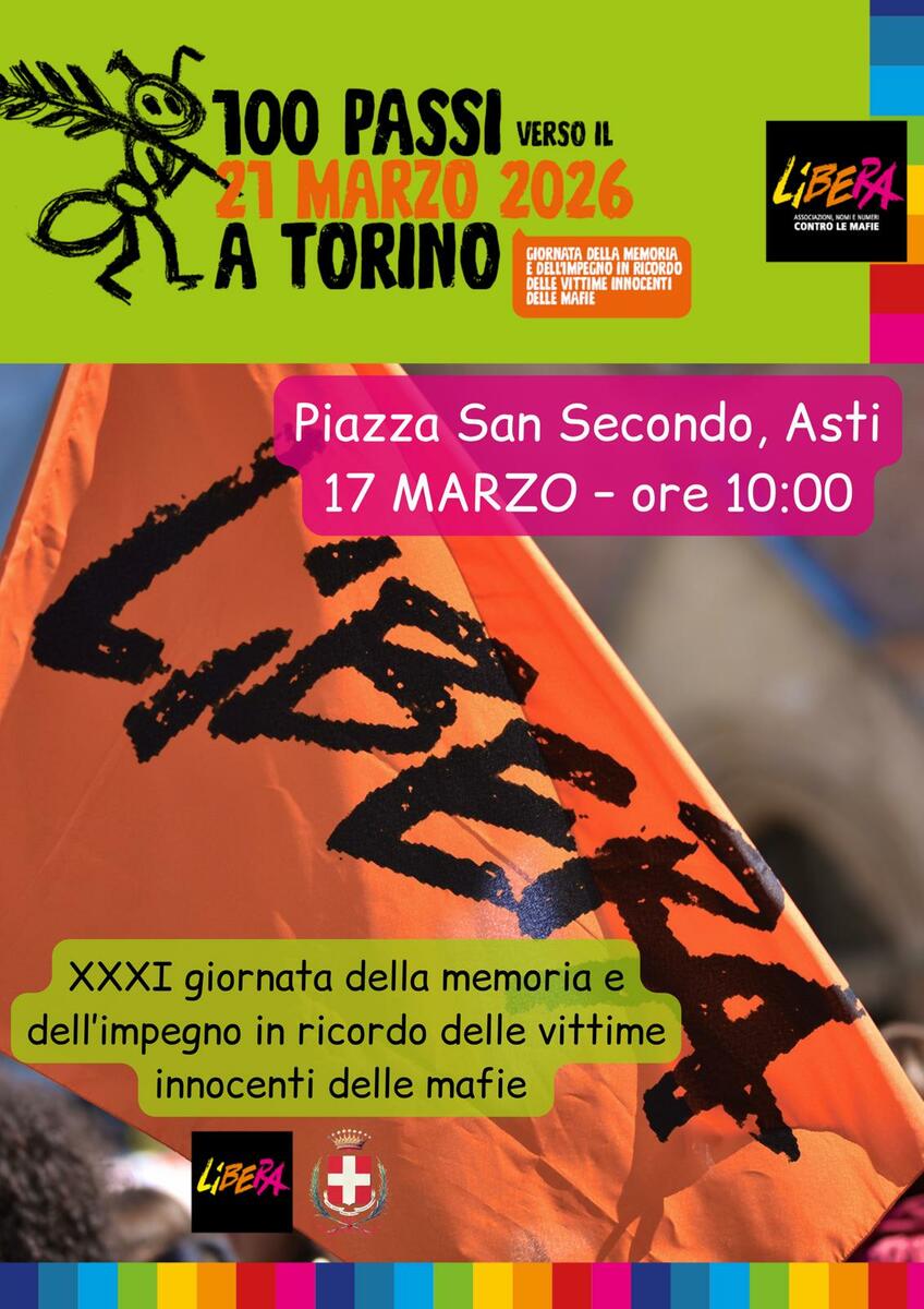In preparazione alla XXXI Giornata Nazionale della Memoria e dell'Impegno in ricordo delle vittime innocenti delle mafie, che quest'anno si svolgerà a Torino con il corteo e la lettura dei 1101 nomi delle vittime, Libera celebra l'appuntamento anche ad Asti. L'evento locale è in programma per il 17 marzo, dalle 10 alle 12, in piazza San Secondo, con il coinvolgimento di studenti, cittadini e rappresentanti delle istituzioni.