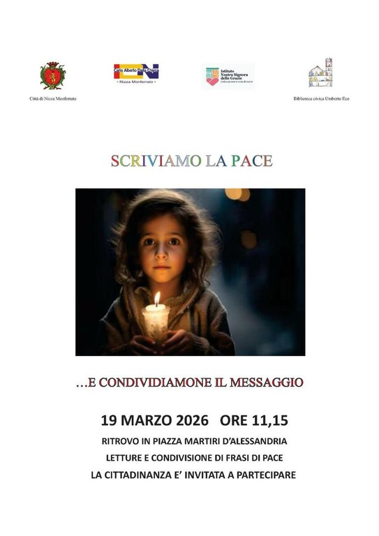 Domani, giovedì 19 marzo, a Nizza Monferrato sono in programma due appuntamenti dedicati alla pace e alla lettura.
