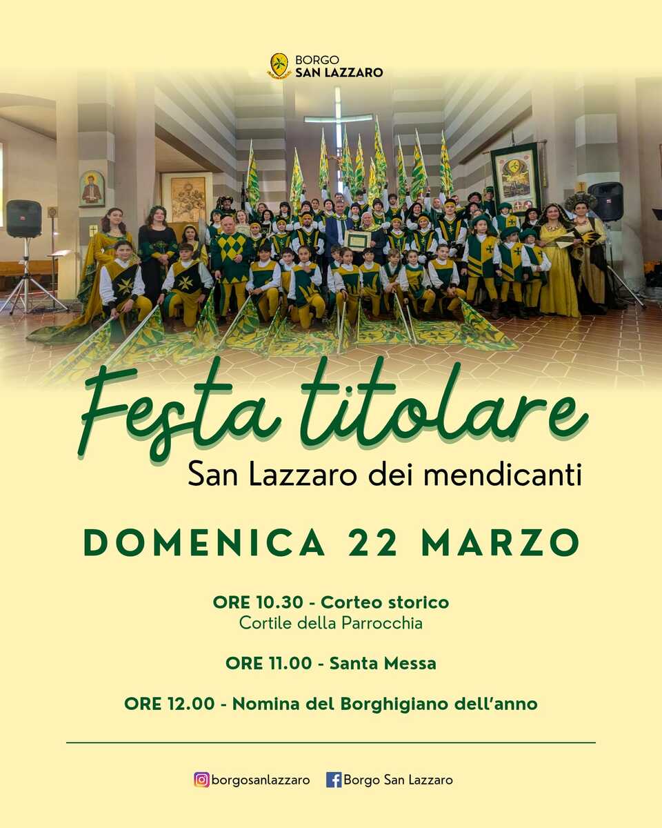 Domenica 22 marzo il Borgo San Lazzaro celebrerà la ricorrenza di San Lazzaro dei mendicanti, un appuntamento molto atteso che unisce fede, storia e appartenenza al territorio. Le celebrazioni prenderanno il via alle 10.30 con il corteo storico, che animerà il cortile della parrocchia portando i colori e le atmosfere di un tempo nel cuore del borgo.