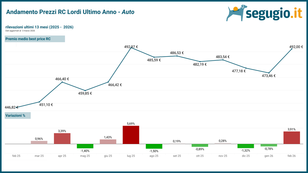 Un rialzo che torna a farsi sentire in modo pungente sui portafogli degli automobilisti italiani. I nuovi dati diffusi da Segugio.it, celebre portale specializzato nella comparazione online di servizi assicurativi, delineano un quadro inequivocabile per il mese di febbraio 2026: i prezzi per proteggere la propria vettura sono in decisa risalita.