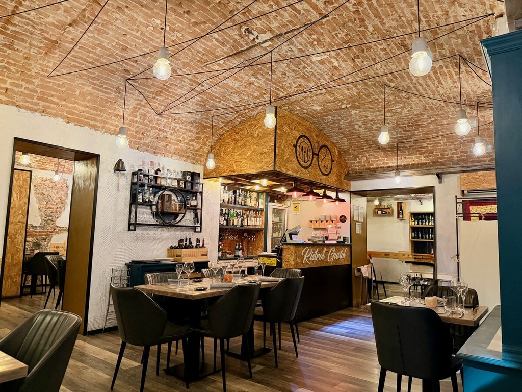 Sicuramente al Guviol sono abituati a giocare a tutto campo, Del resto il nome del locale – acronimo di GUsto, VIsta e OLfatto – evoca la volontà di proporre un’esperienza a 360° che, prima ancora di cominciare ad assaggiare i diversi piatti, emerge già con chiarezza dall’atmosfera ad un tempo elegante e informale che nelle sue sale si respira: pavimenti in legno, volte in mattoni, tavoli che mescolano legno e ferro e, fattore non da poco, poltroncine decisamente comode. Quanto basta per promettere una buona cena: e quella che mangerò qui non sarà solo una promessa mantenuta, ma si qualificherà come un’autentica sorpresa. La cucina di questo “Ristrot”, guidata da una mano d’esperienza come quella di Michele Emilio Corrado, puntando su una materia prima di qualità e su una creatività capace di far interagire ingredienti diversi attraverso riuscite combinazioni, risulta capace di proporre piatti capaci di dare emozioni proprio per l’essenzialità del gusto a cui puntano.