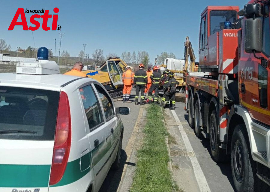 Per gestire la situazione e prevenire ulteriori rischi legati alla stabilità del mezzo e alla sicurezza della circolazione, sono intervenuti prontamente gli agenti della polizia locale e due squadre dei vigili del fuoco (una dal distaccamento di Nizza Monferrato e l'altra, dal comando di Asti, per gestire la gru con cui verrà recuperato il mezzo).