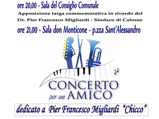 Alle ore 21, nella sala don Monticone di piazza Sant’Alessandro, si terrà “Concerto per un amico”, dedicato a Pier Francesco Migliardi “Chicco”, con i Musici di santa Pelagia.