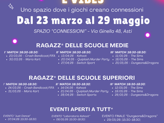 Ha preso il via ad Asti, presso lo spazio “Connessioni” di via Ginella 48, la prima edizione di “Gaming Community e Vibes”, iniziativa promossa dalla cooperativa sociale La strada con il sostegno del Comune di Asti e del Centro per le famiglie.