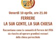 Venerdì 10 aprile alle ore 21, nella chiesa parrocchiale di Ferrere, la comunità si riunirà per un appuntamento speciale, carico di memoria e significato. L’occasione è il centenario delle grandi ristrutturazioni dell’edificio religioso, un momento importante per ripercorrere la storia del paese e rendere omaggio a chi, con sacrificio e determinazione, ha contribuito a costruirne l’identità.