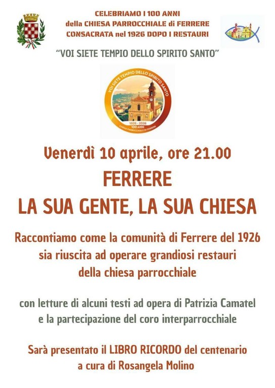 La narrazione prenderà forma a partire dal volume “Ferrere, la sua gente, la sua chiesa”, realizzato per l’occasione da Rosangela Molino. A rendere ancora più coinvolgente l’incontro sarà la partecipazione dell’attrice Patrizia Camatel, che interpreterà alcuni brani tratti dal libro, dando voce alle storie e alle emozioni di un tempo.