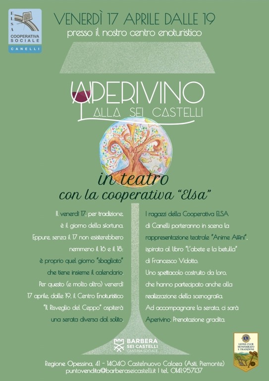 Teatro e vino si incontrano in una serata che gioca con la scaramanzia ma punta su contenuti e partecipazione. Venerdì 17 aprile, dalle 19, il Centro enoturistico “Il Risveglio del ceppo” ospiterà Anime affini, spettacolo ispirato al libro L’abete e la betulla di Francesco Vidotto, promosso dalla Cantina barbera dei Sei castelli.
