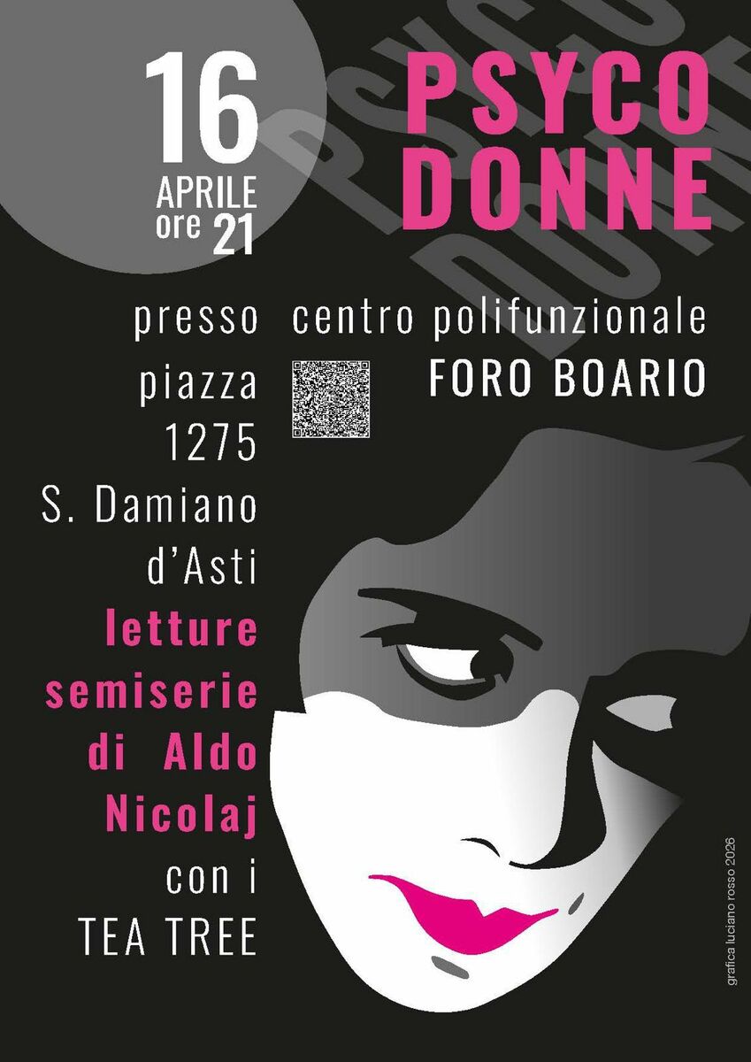 Il fine settimana si apre giovedì 16 aprile alle 21 con un appuntamento teatrale di grande richiamo. Il centro polifunzionale del Foro Boario, in piazza 1275, ospiterà lo spettacolo "Psyco Donne", una serie di letture semiserie tratte dalle opere di Aldo Nicolaj e portate in scena dalla compagnia Tea Tree. L'ingresso sarà gratuito, con la possibilità di lasciare eventuali offerte devolute all'associazione Sia Colline Alfieri. Sempre giovedì, alle 18.30, l'Enoteca Regionale Colline Alfieri in piazza Libertà inaugurerà un ciclo di incontri settimanali gratuiti dedicati alle eccellenze locali come pane, vino, tartufo e nocciole.