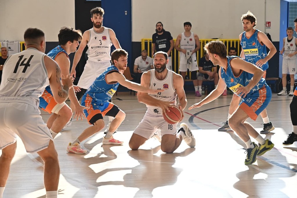 La SBA esce dalla prima sospensione ordinata e attenta su entrambe le metà campo e ritocca il massimo vantaggio portandosi sul +9. La Punto Casa, nonostante il bonus falli di squadra esaurito con grande anticipo, rimane abbondantemente nella contesa e la tripla di Arduino, a 3'51" dal giro di boa (25-22), costringe la panchina locale a spendere un time-out. Il minuto di sospensione fa bene a Tava e compagni che, nell'ultimo giro di lancette, toccano la doppia cifra di vantaggio. All'intervallo lungo il tabellone dice 37-26.