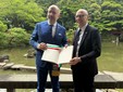Nel giardino secentesco della sede diplomatica, il sindaco e presidente della Provincia ha promosso le eccellenze territoriali colloquiando con la massima autorità italiana in Giappone