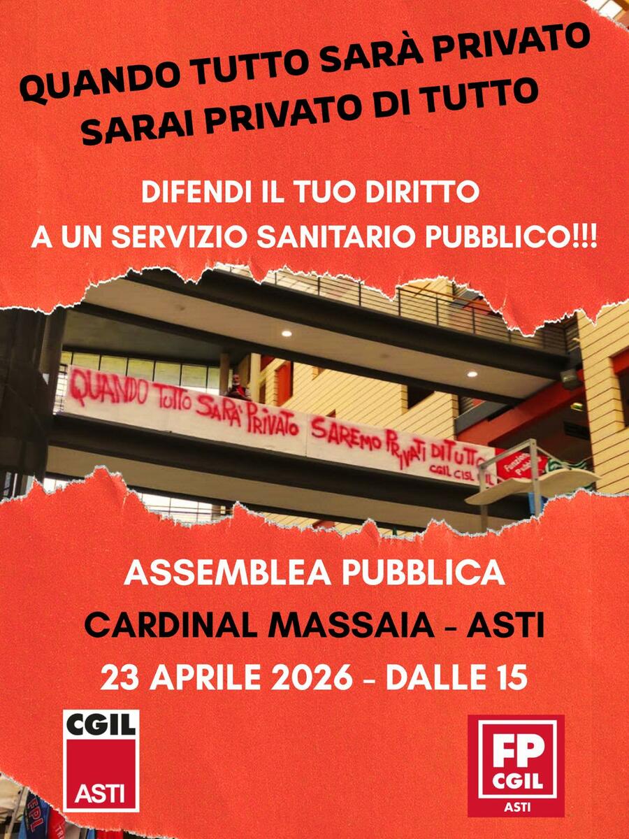 Il messaggio era scritto chiaro nel volantino che circolava da giorni: "Quando tutto sarà privato, sarai privato di tutto". E oggi pomeriggio, a partire dalle 15, quel monito si è trasformato in presidio: lavoratori della sanità, cittadini e rappresentanti sindacali si sono ritrovati davanti al Cardinal Massaia di Asti per un'assemblea pubblica promossa dalla CGIL a difesa del servizio sanitario pubblico.